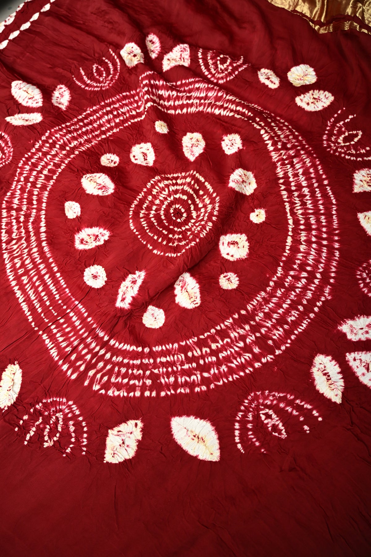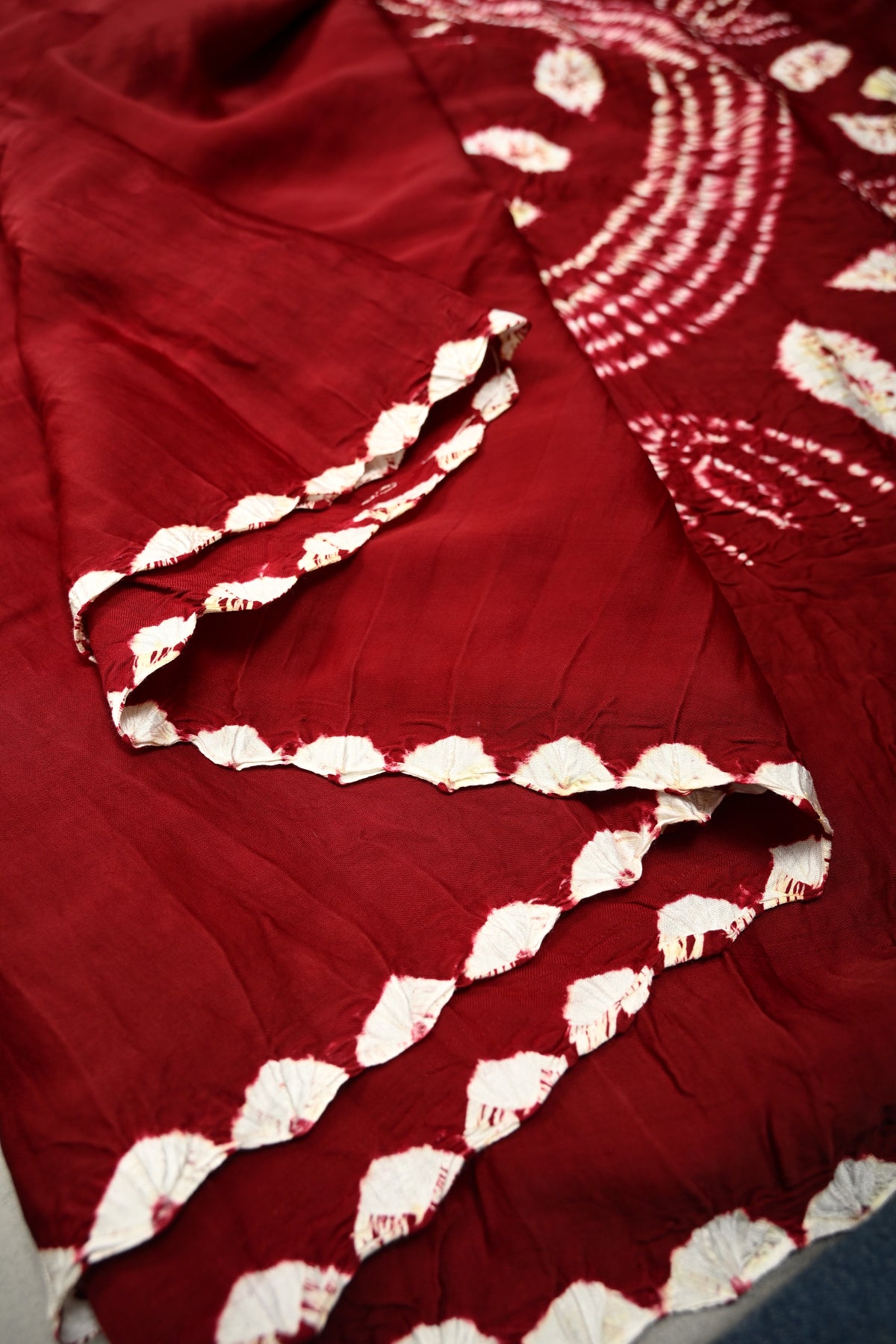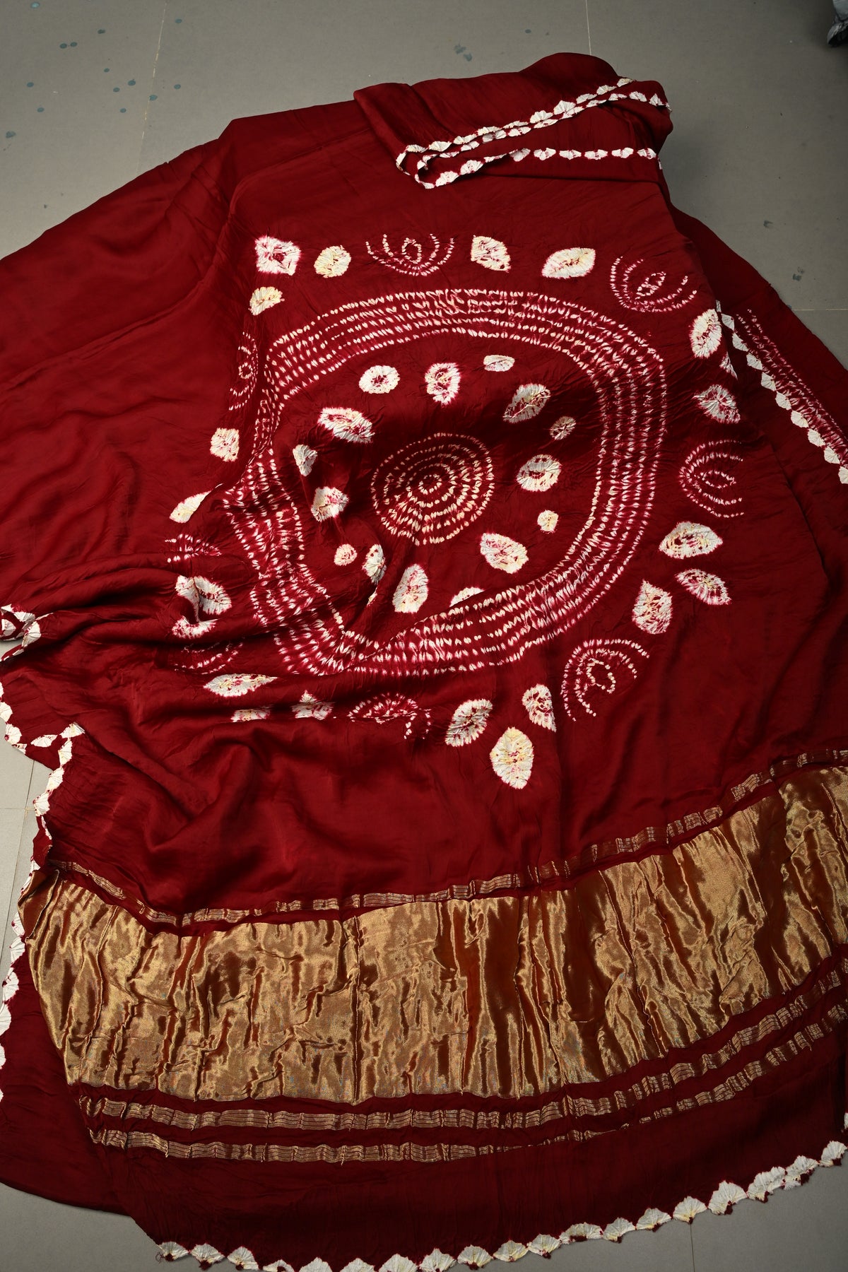 Maroon Modal Silk Saree with Lagda Patta and Hand Shibori Mandala Pallu