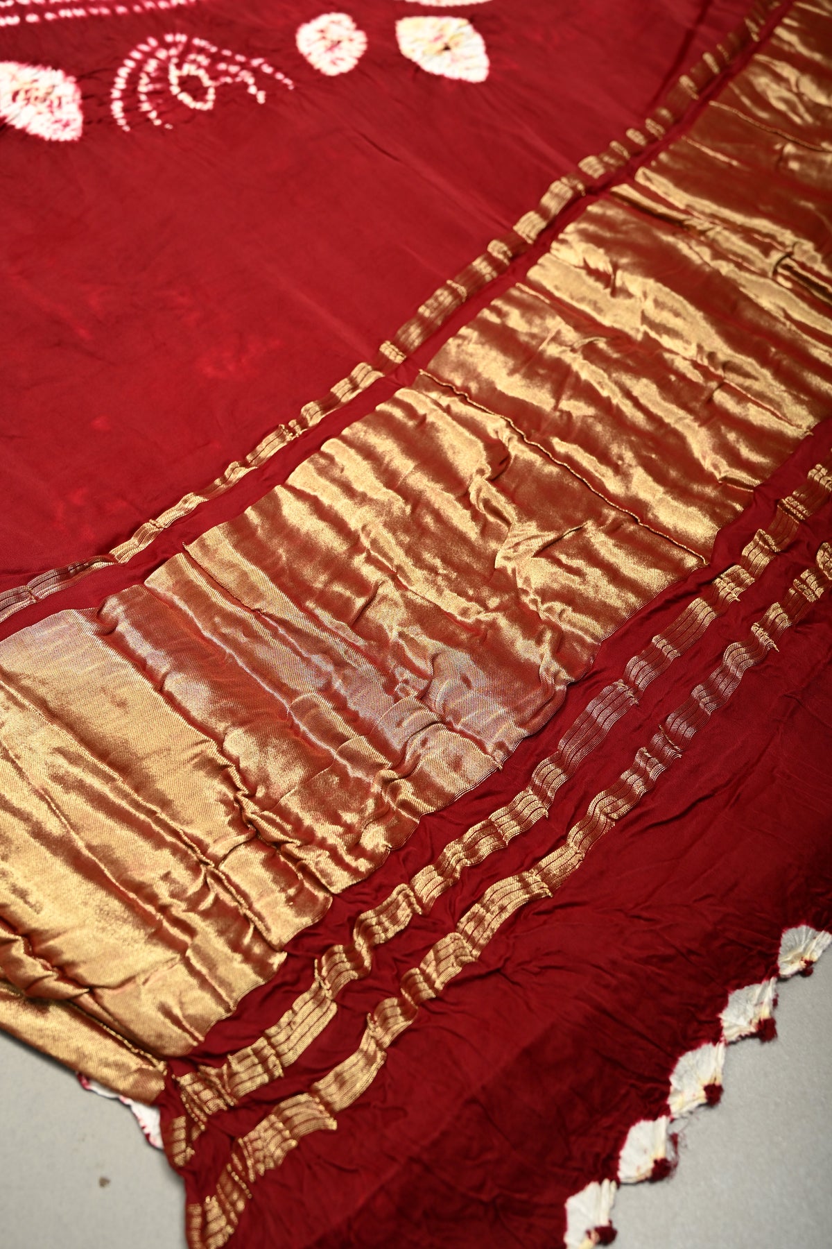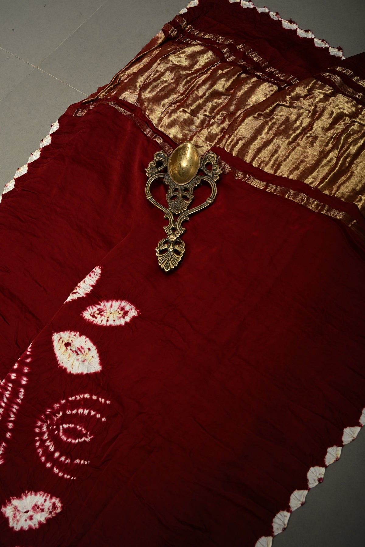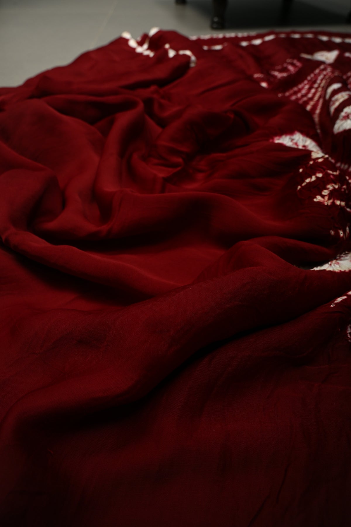 Maroon Modal Silk Saree with Lagda Patta and Hand Shibori Mandala Pallu