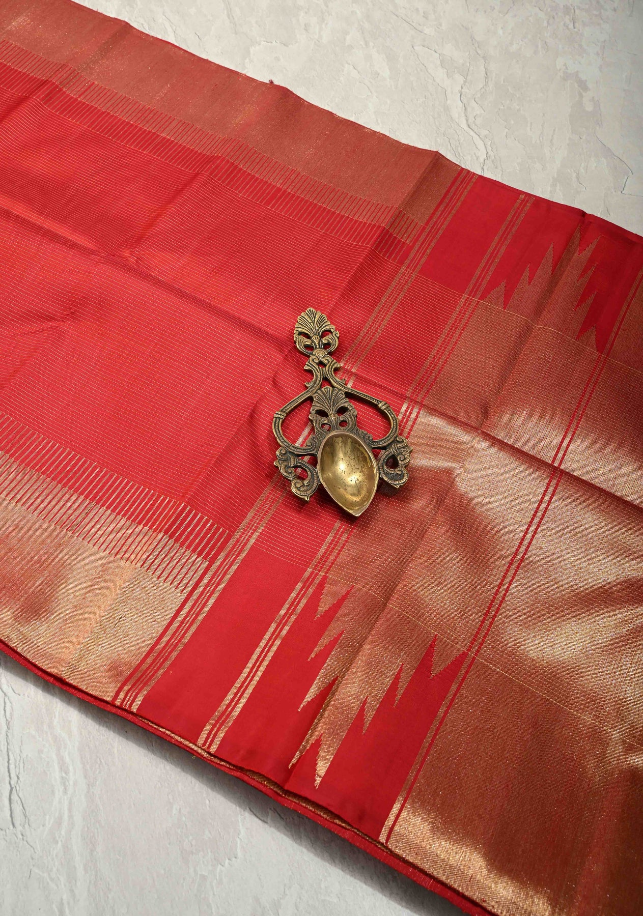 Deep Red Pure Kanjivaram Silk Saree with Vairaoosi Zari Stripes and Tissue Zari Border | SILK MARK CERTIFIED