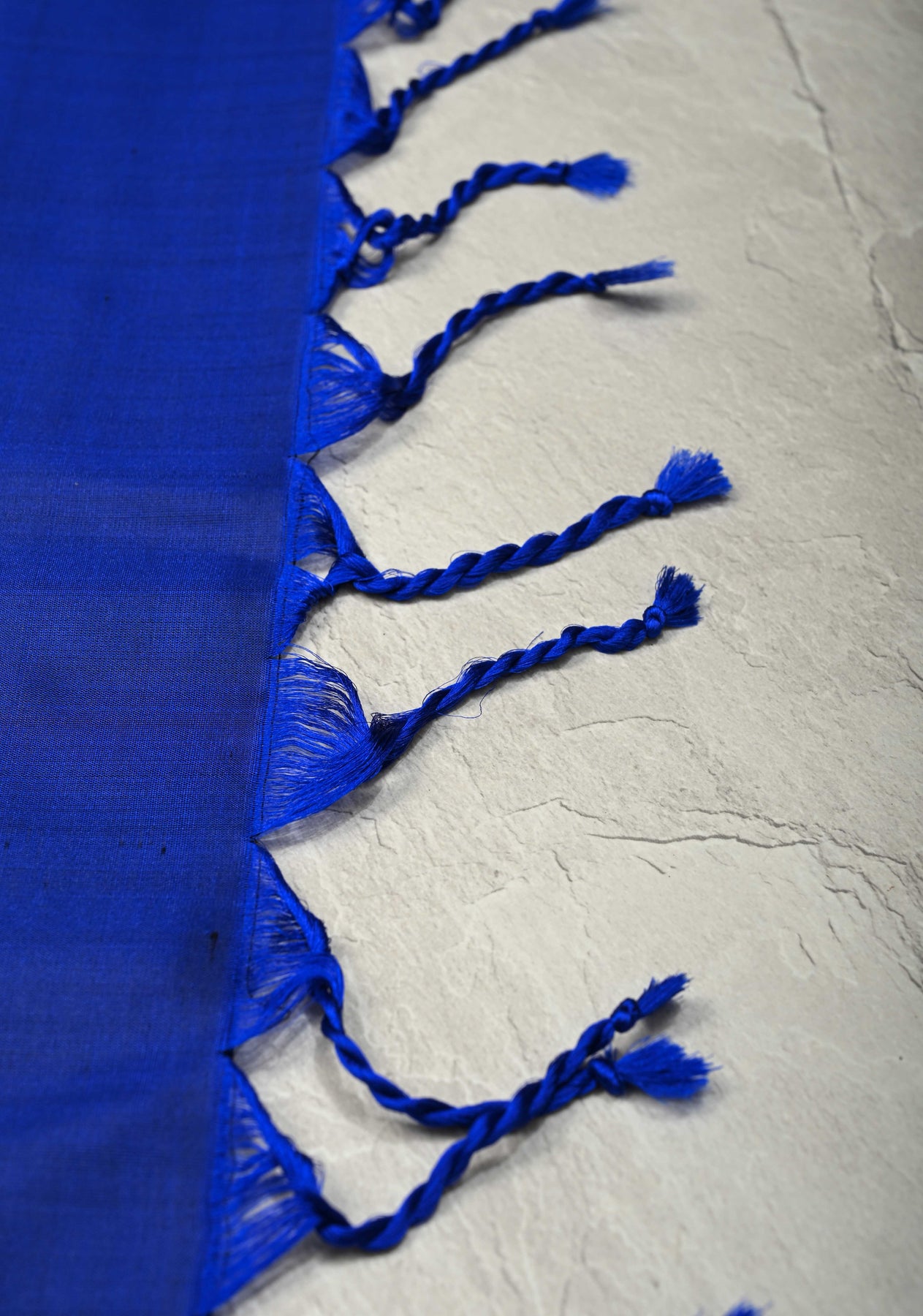 This saree is ready to wear with fall and pico done. Handmade silk tassels as seen in the pic adorn the pallu and add more grace to it. An unstitched blouse fabric is included.