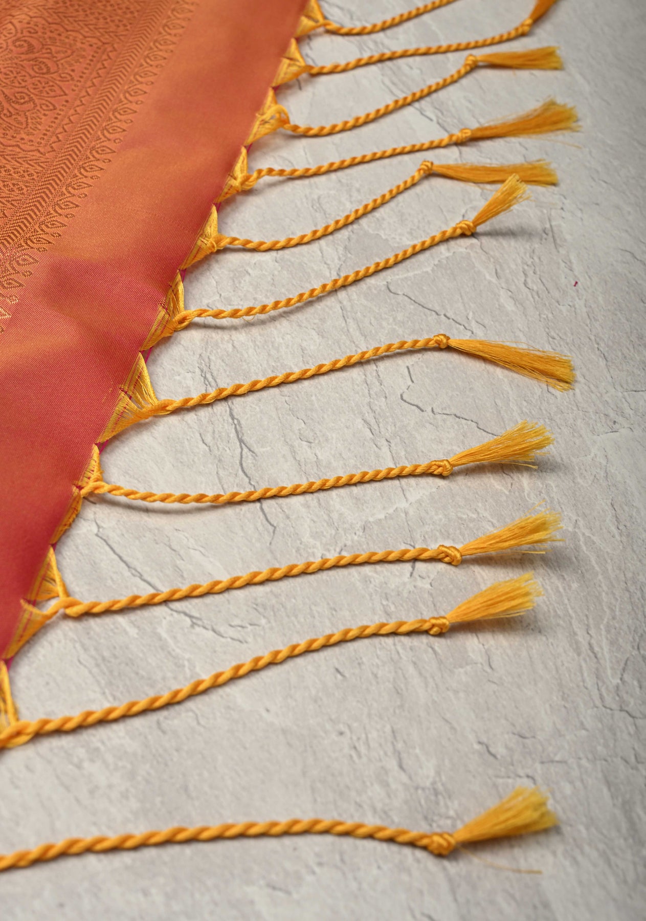 This saree is ready to wear with fall and pico done. Tassels adorn the pallu and add more grace to it. An unstitched blouse fabric is included.