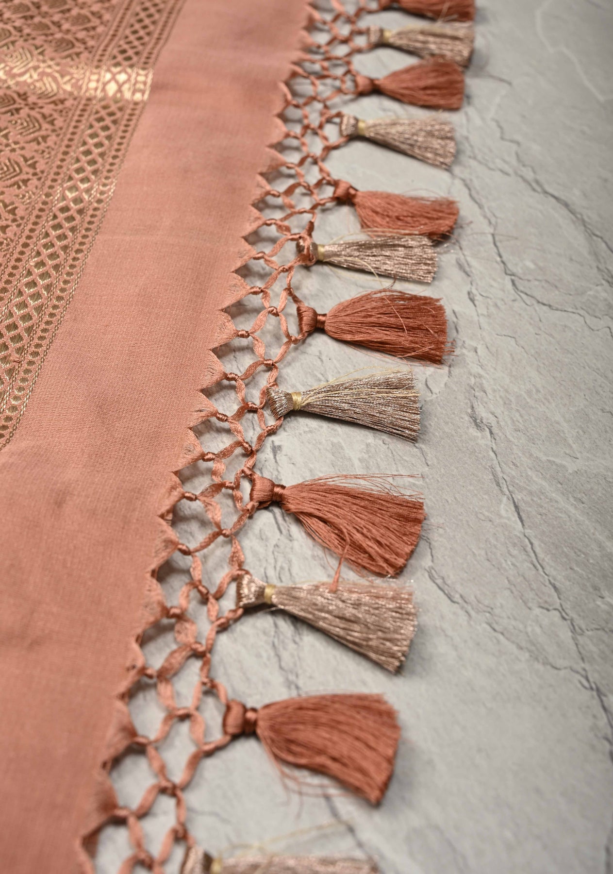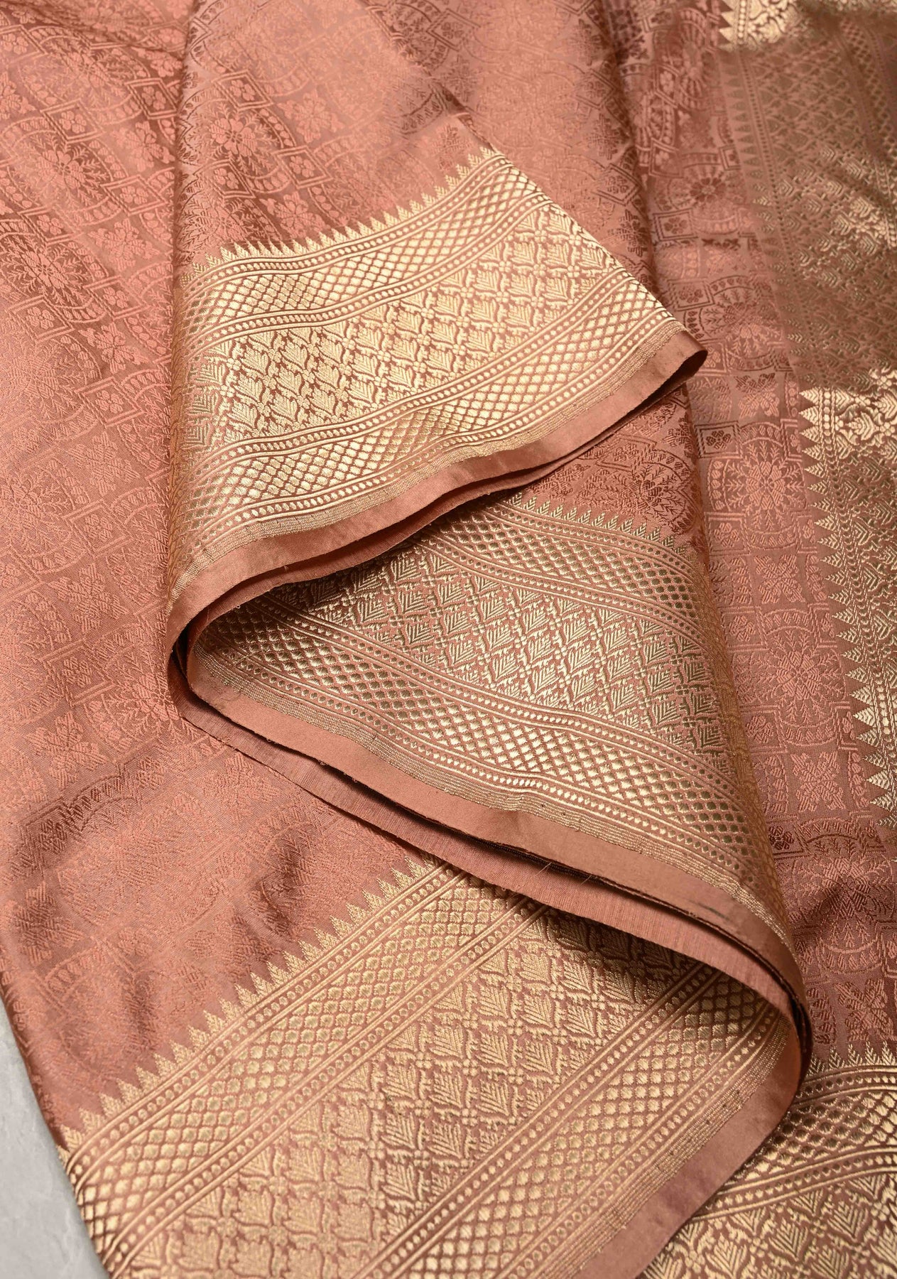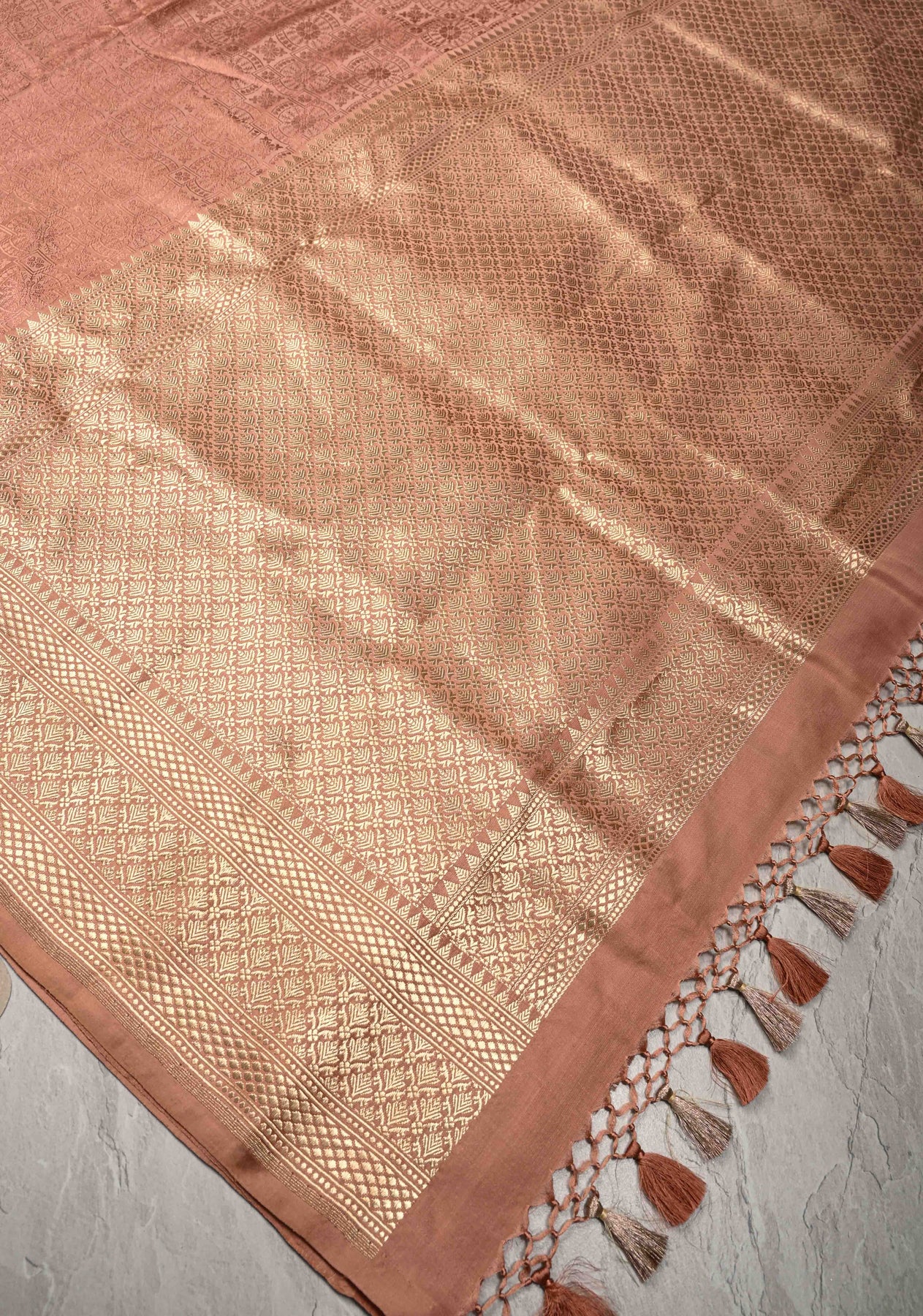 Dusty Rose Tanchoi Banarasi Satin Silk Saree with Brocade and Contrast Zari Border| SILK MARK CERTIFIED