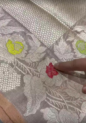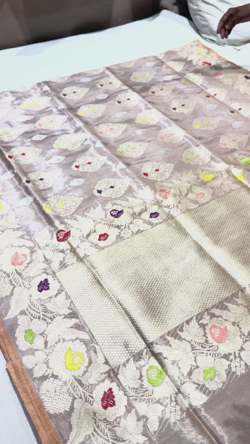 Dusty sandstone Banarasi Tissue Silk Saree with Kadhuwa Meenakari weave Butta and Border | SILK MARK CERTIFIED