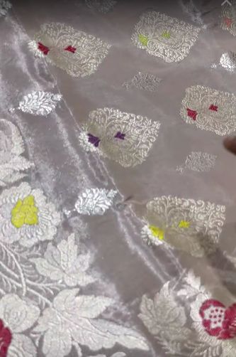 Grace meets heritage in this elegant Dusty Sandstone Banarasi Tissue Silk Saree, woven with meticulous artistry using the time-honored Kadhuwa technique. The soft, lustrous tissue silk base shimmers subtly, while intricate Meenakari buttas are delicately scattered across the body, adding hints of color and richness. A beautifully woven Zari border, enhanced with Meenakari accents, frames the saree with timeless grandeur. Lightweight yet regal, this saree is ideal for weddings, festive occasions, or heirloom collections. A perfect balance of tradition and understated sophistication, this piece is a celebration of Banarasi craftsmanship at its finest.
