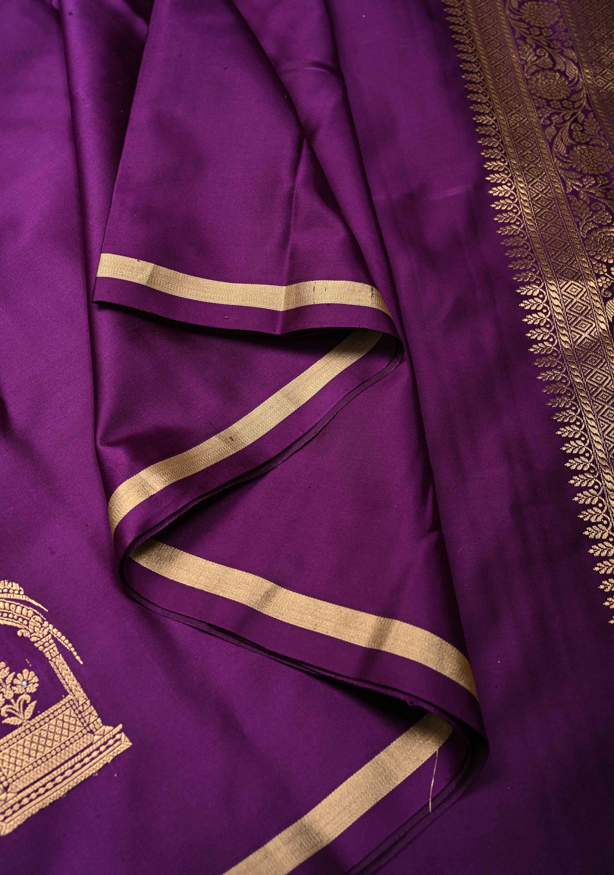 Rich in color and steeped in tradition, this Eggplant Purple Banarasi Mashru Silk Saree is a stunning representation of understated . Woven from lustrous Mashru silk — known for its smooth satin finish and subtle sheen — the saree offers a fluid drape that feels both indulgent and effortless.