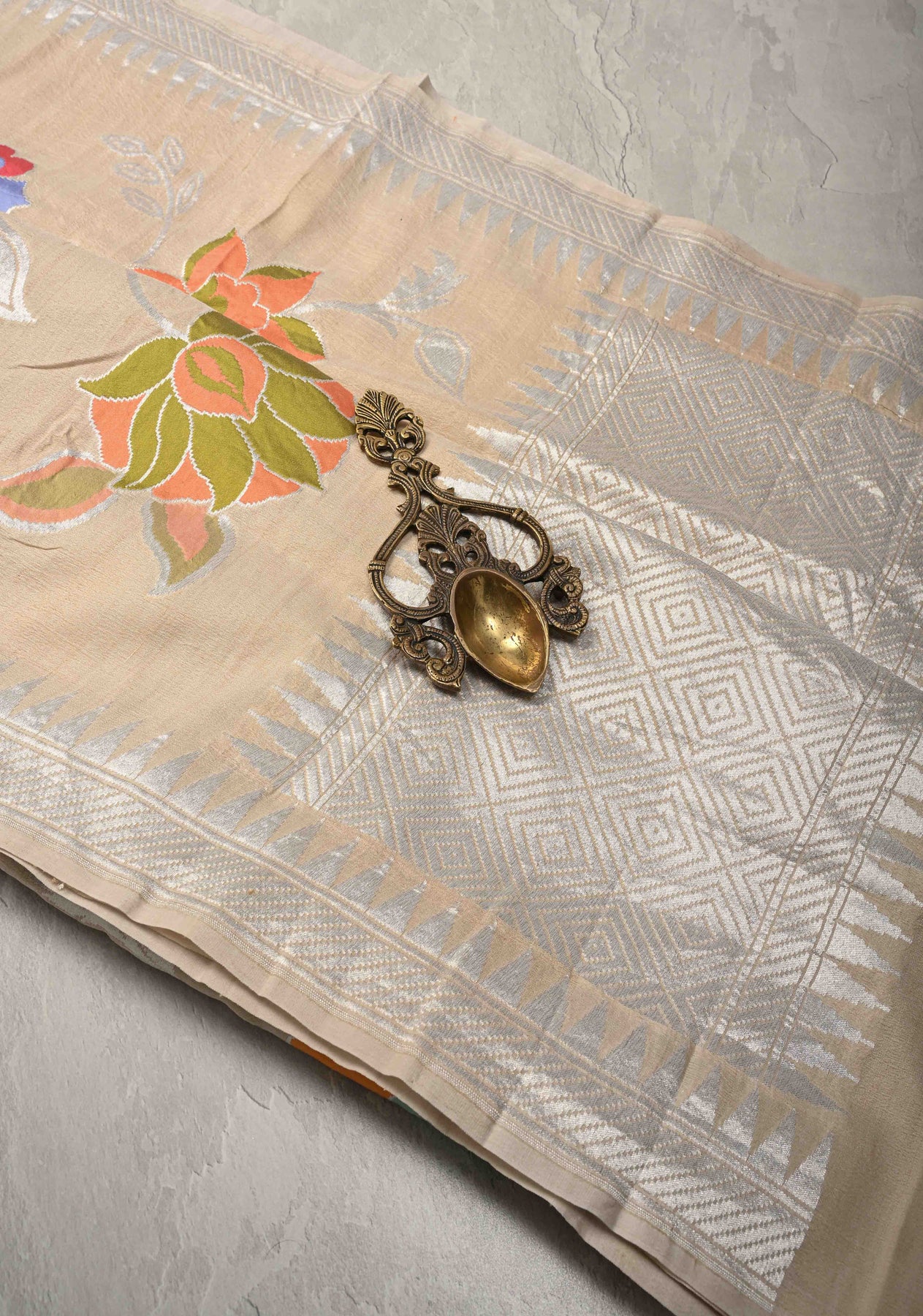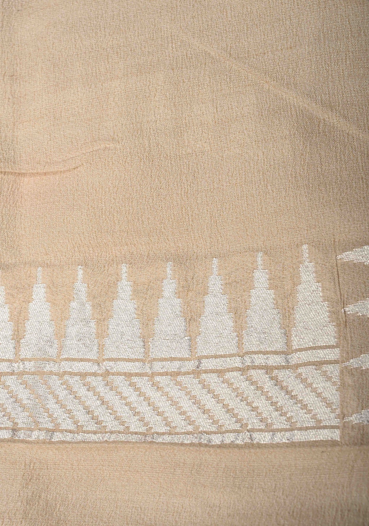 Exquisite Cream Banarasi Tussar Georgette Saree with Meenakari Floral Jaal and Zari Temple Border | SILK MARK CERTIFIED