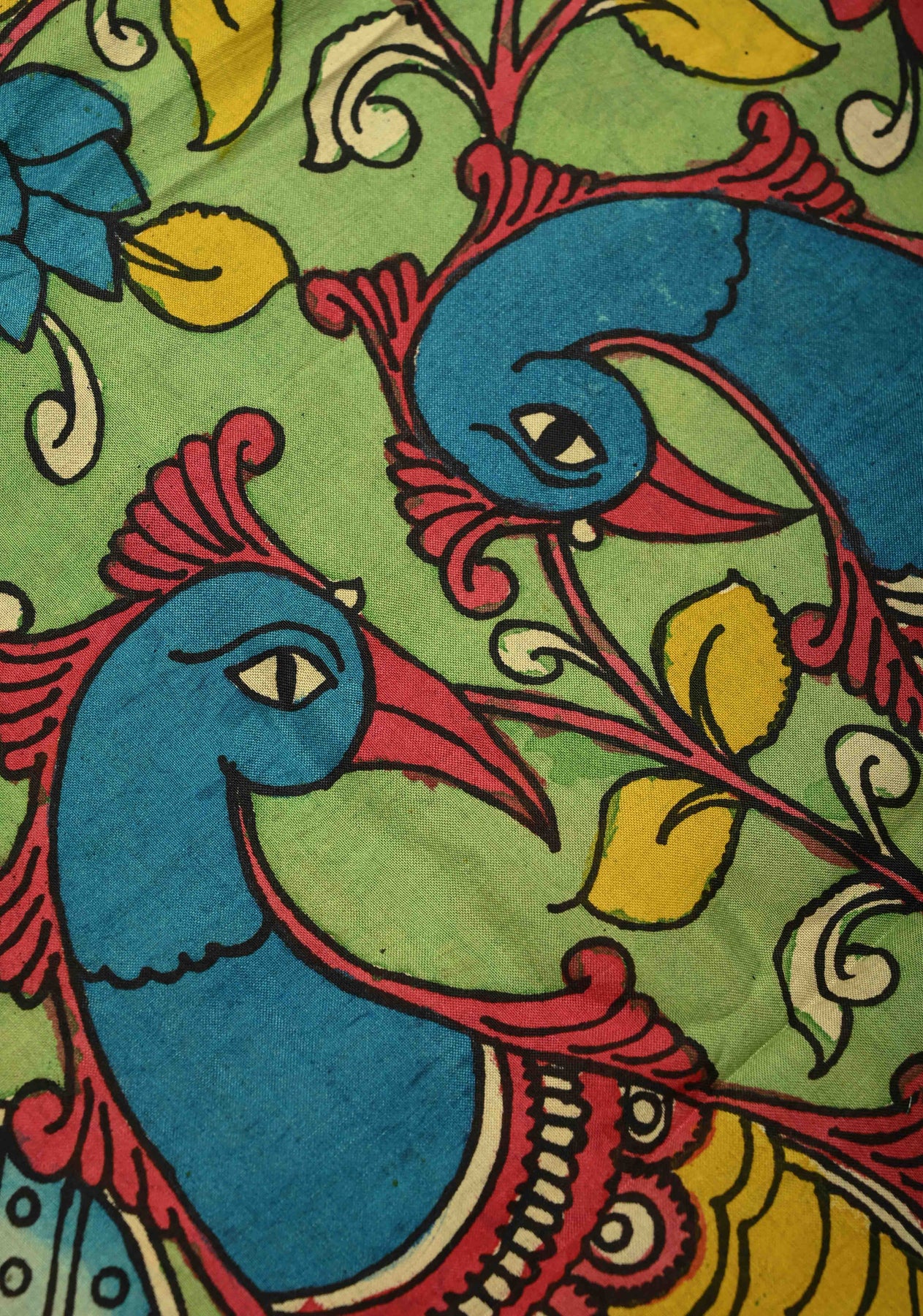The Floral and Peacock Theme Grey Authentic Pen Kalamkari on Pure Chennuri Silk Saree with Border is a beautiful blend of artistry and elegance. Featuring intricate hand-painted Pen Kalamkari motifs of vibrant florals and peacock, this saree is set against grey Chennuri silk base, creating a serene yet striking design. The carefully crafted border adds a touch of sophistication, making it perfect for weddings, festivals, and special occasions. This saree is a timeless piece that showcases traditional craftsmanship and artistic beauty.