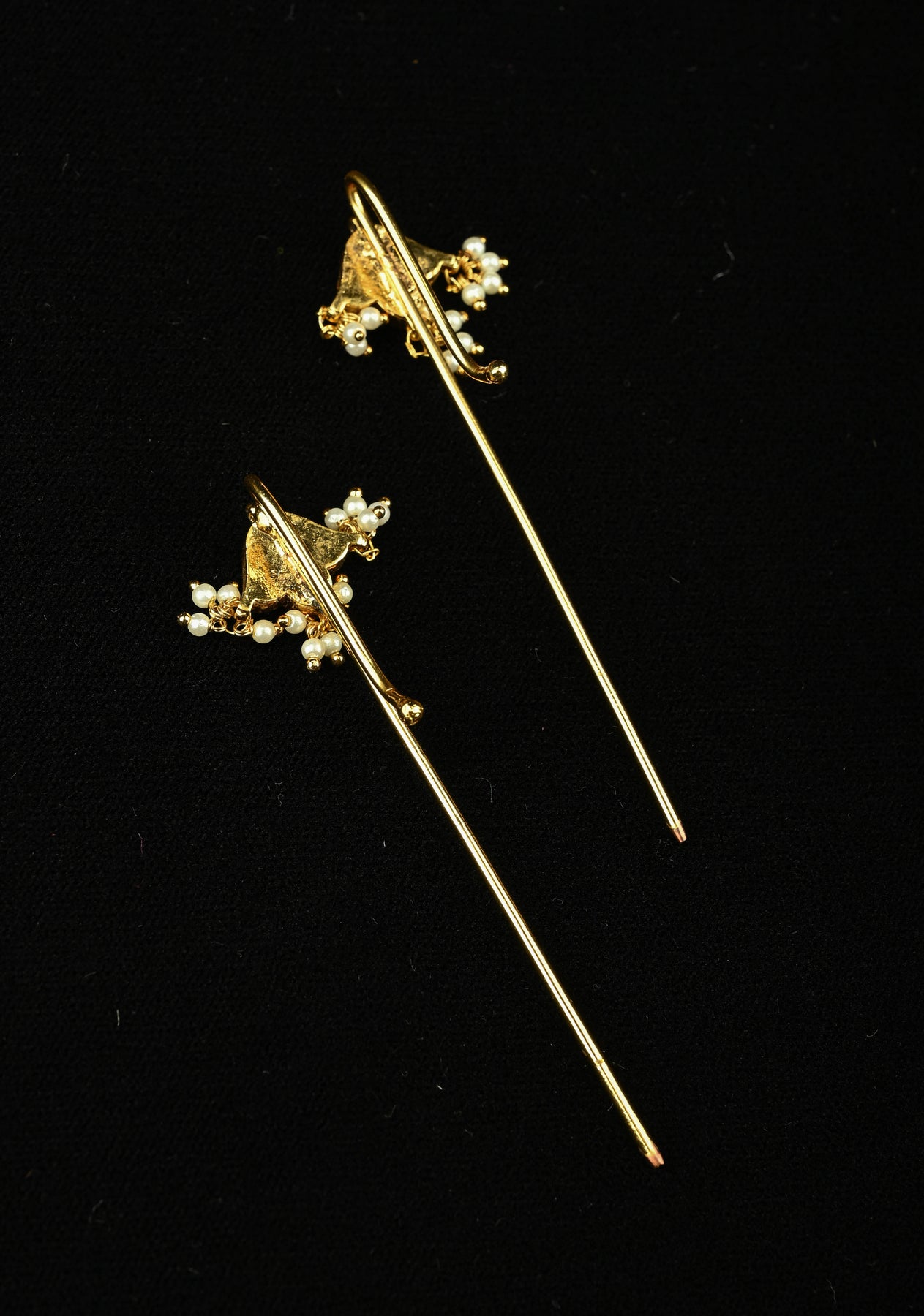 Delicate pearl drops complete the design, lending graceful movement and a touch of classic elegance. Perfect for weddings, festive occasions, and special celebrations, this ear cuff adds a stunning traditional flair to any ensemble