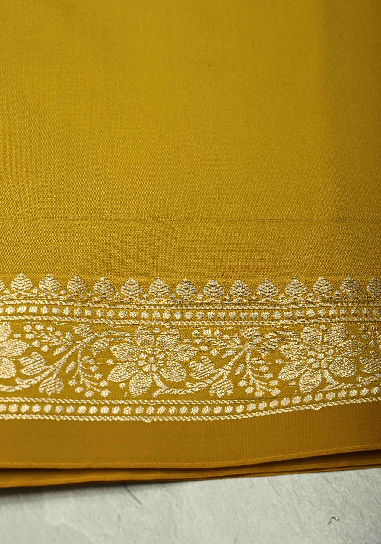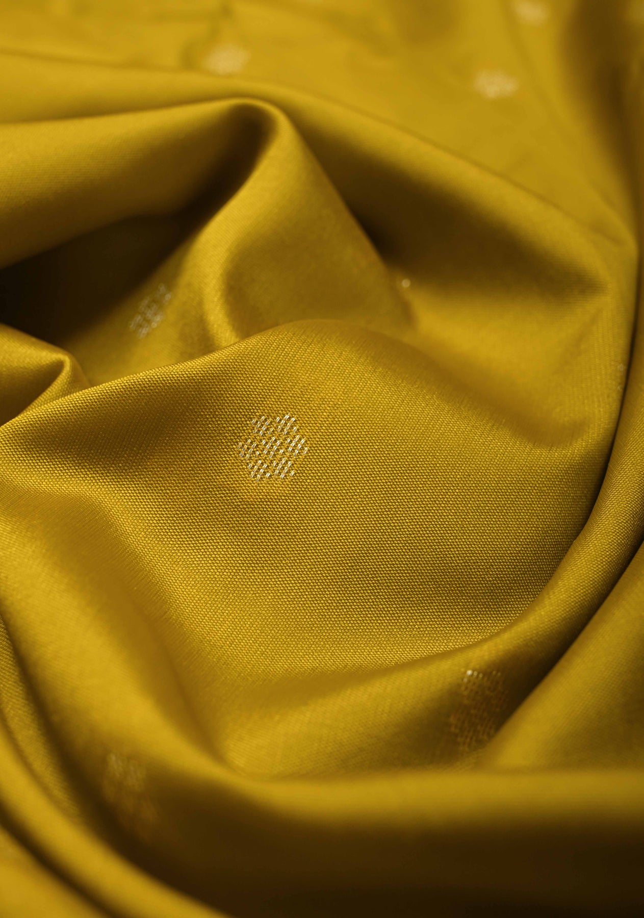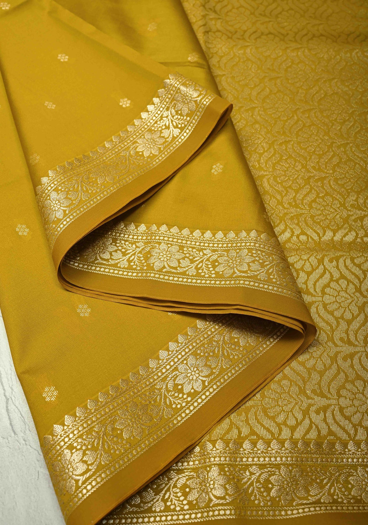 Frost Mustard Yellow Semi Silk Saree with Chunri Buttis and Minimal Zari Border