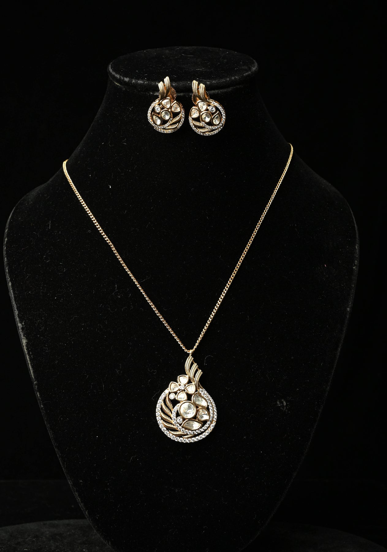 Elevate your everyday elegance with this beautifully crafted Gold CZ Floral Pendant Set, designed to add a touch of luxury to every outfit. Featuring a refined floral motif with this pendant and earrings set blends timeless Indian charm