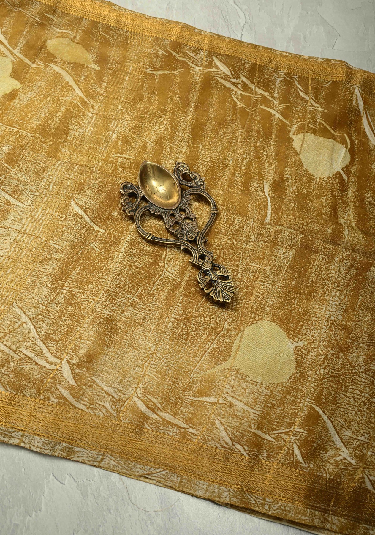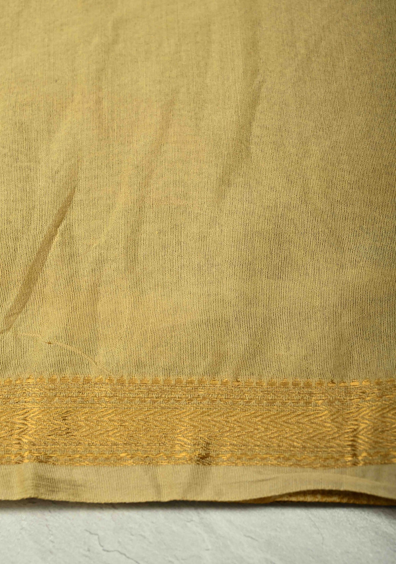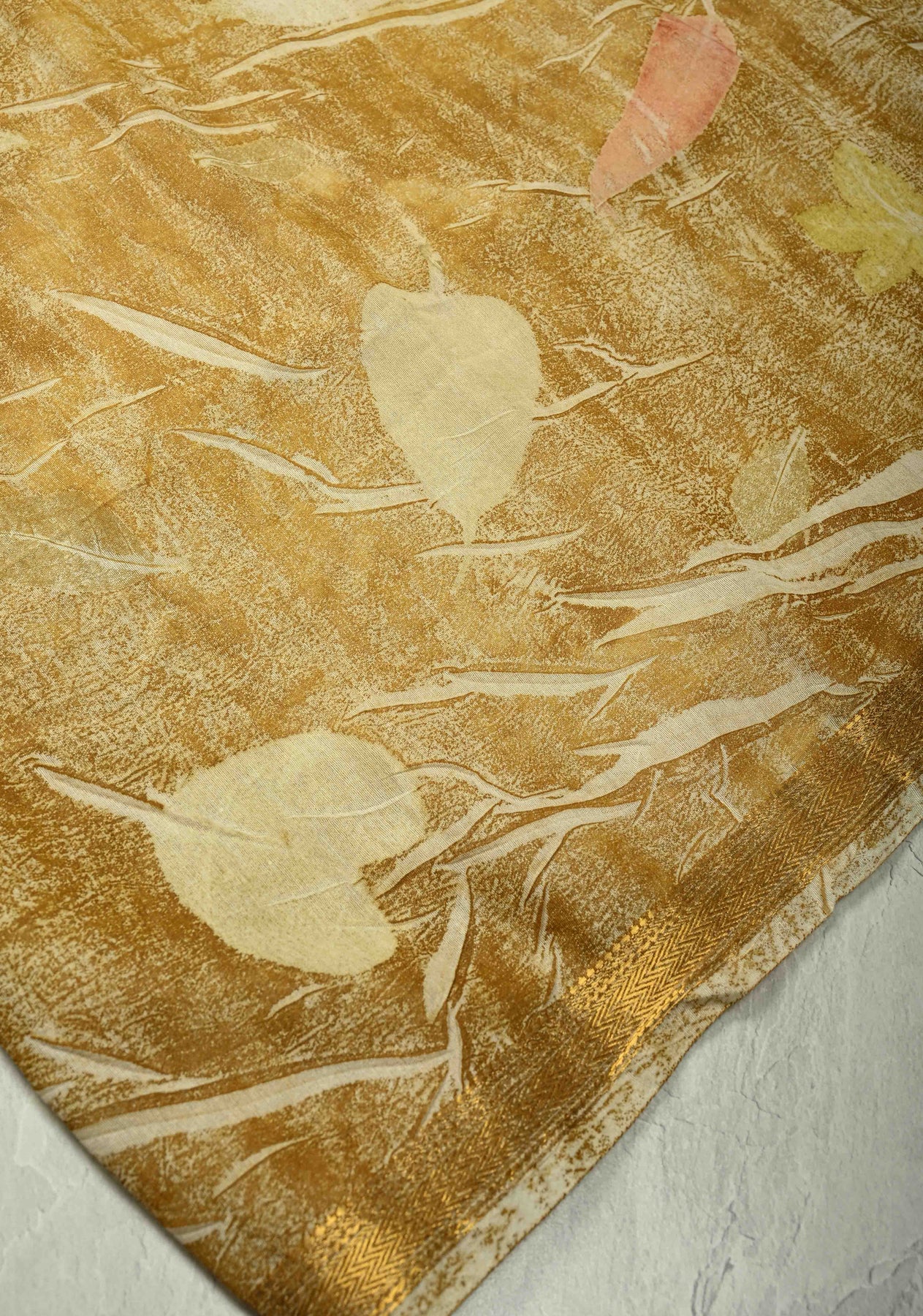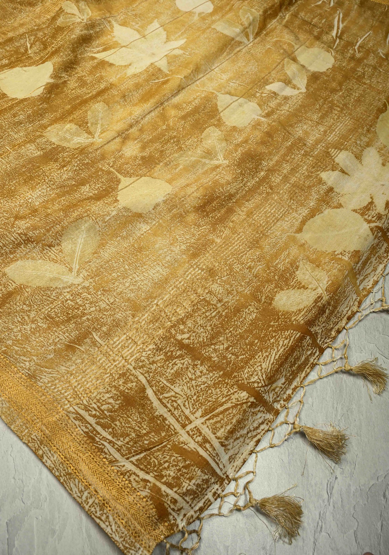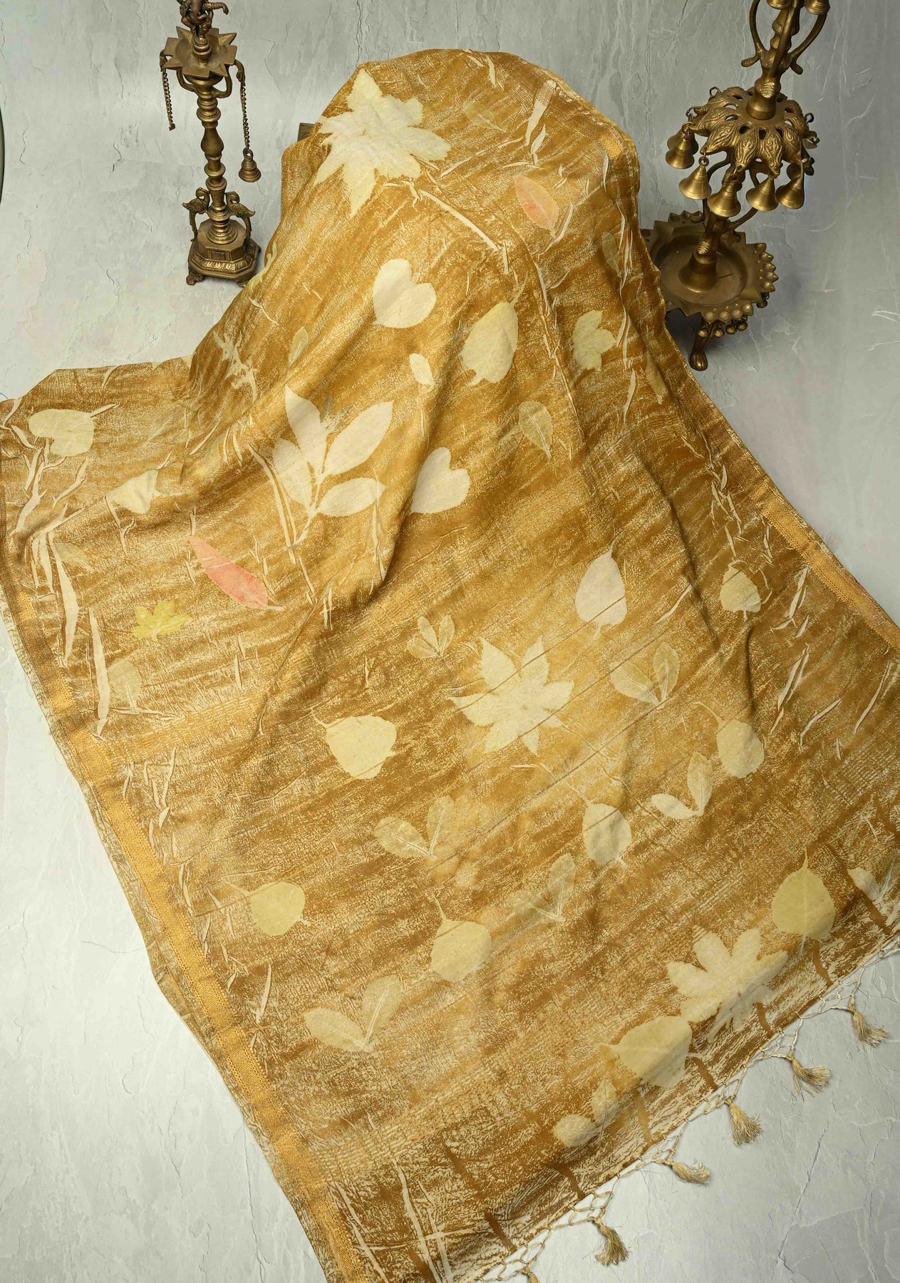 This elegant Golden Yellow Chanderi Silk Saree is a perfect blend of tradition and subtle sophistication. Crafted from luxurious Chanderi silk, the saree features delicate leaf butta motifs intricately woven across the fabric, adding a touch of natural grace and timeless charm. The rich golden-yellow hue radiates warmth and opulence, making it ideal for festive occasions or graceful day events. A minimal zari border enhances the saree’s understated elegance, giving it a refined shimmer without overpowering its simplicity. Lightweight, lustrous, and beautifully textured, this saree embodies effortless style and classic Indian craftsmanship.