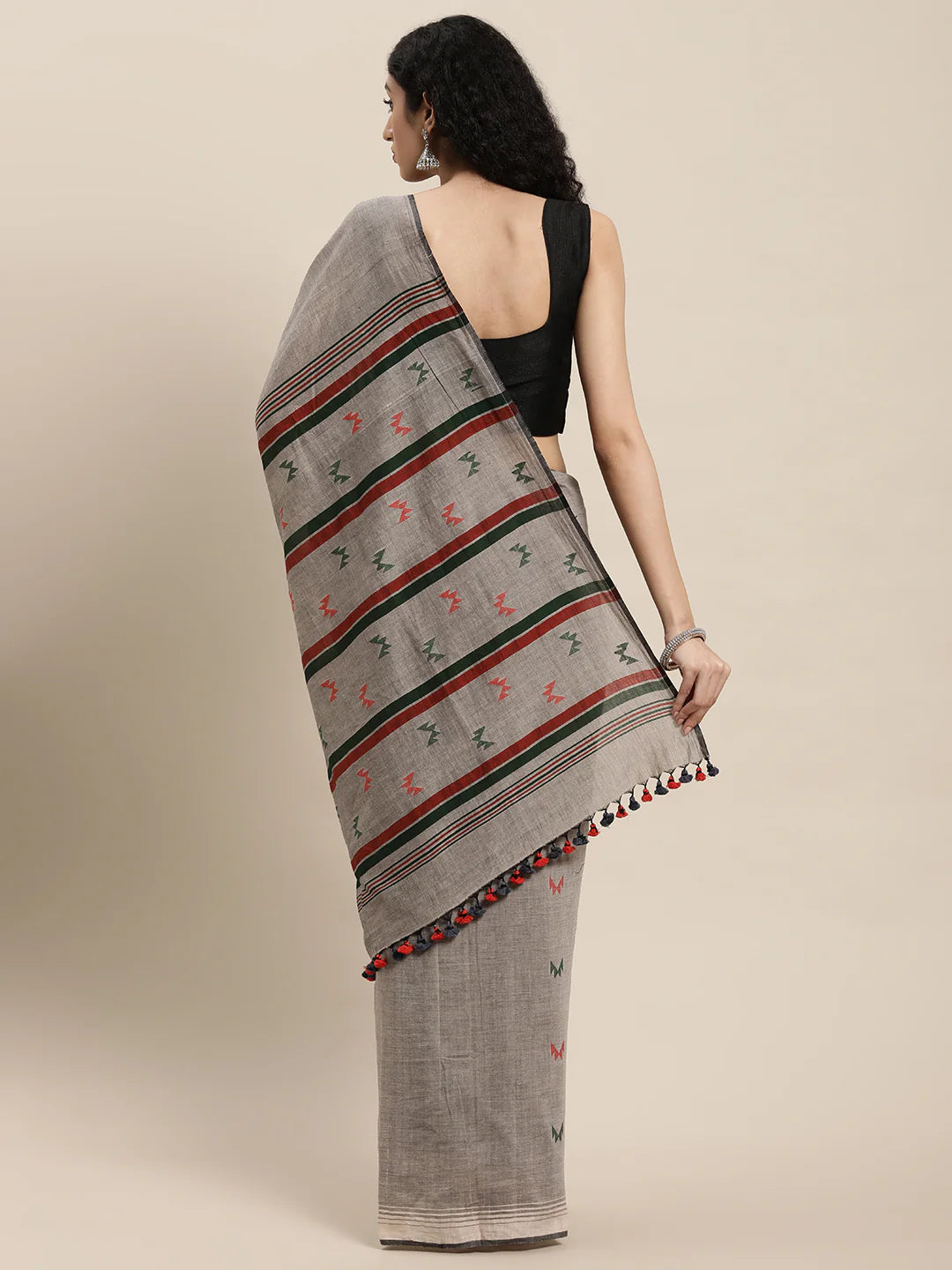This Gray Handloom Jamdani Cotton Saree exudes understated elegance and artisanal charm. Handwoven on soft, breathable cotton, it features delicate Jamdani motifs that create a subtle yet sophisticated pattern. The neutral gray hue lends versatility, making it perfect for office wear, casual gatherings, or festive occasions. Lightweight and gracefully draping, this saree is a timeless addition to any ethnic wardrobe.