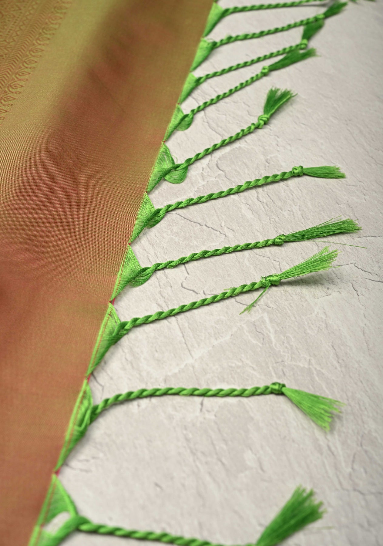 This saree is ready to wear with fall and pico done. Tassels adorn the pallu and add more grace to it. An unstitched blouse fabric is included.
