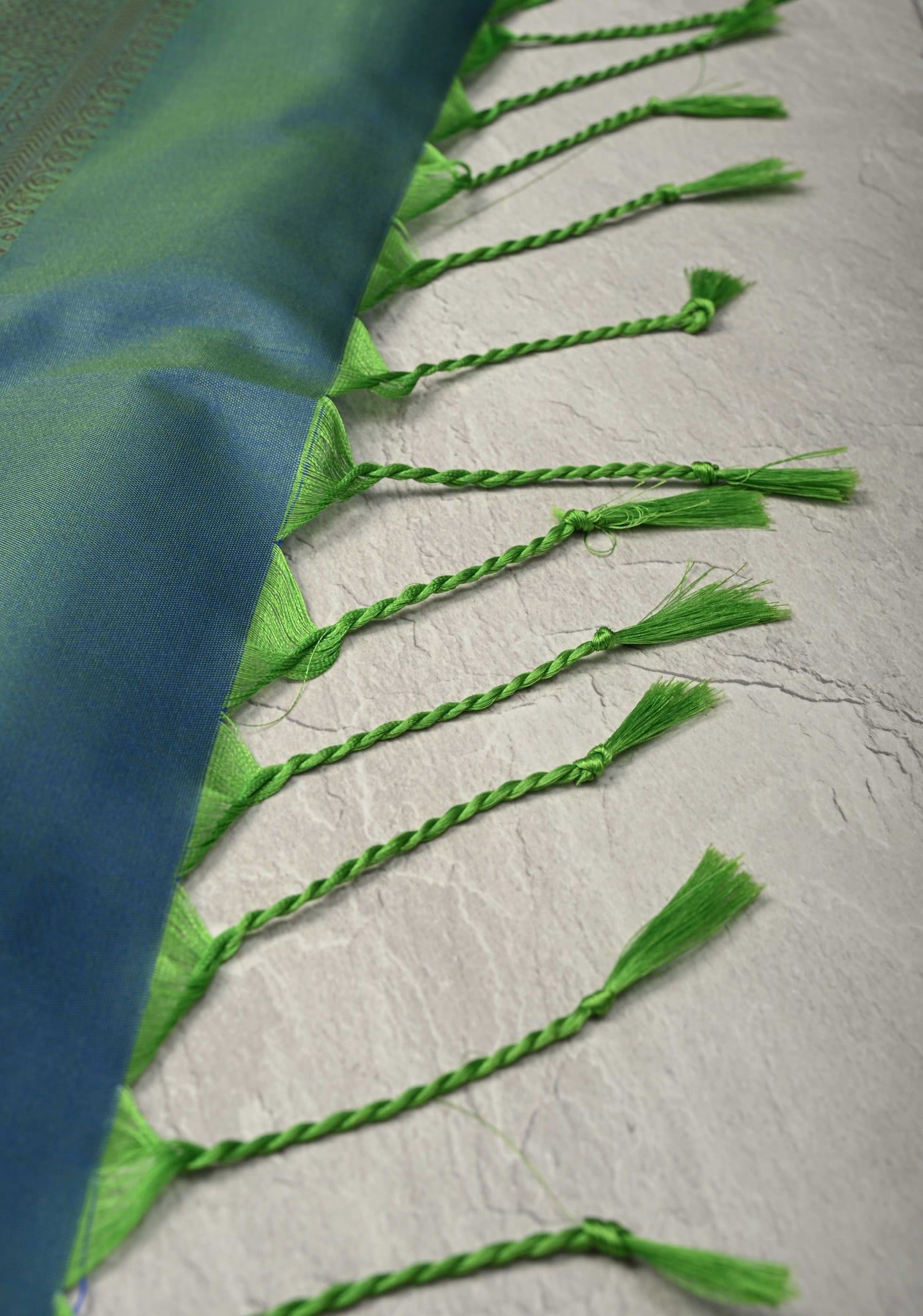 Celebrate timeless tradition with a modern twist in this Green Dual Tone Kanchi Semi Silk Saree. Crafted from soft, lustrous semi silk, this saree brings together classic elegance and contemporary design, making it an ideal choice for festive occasions, weddings, or cultural events.