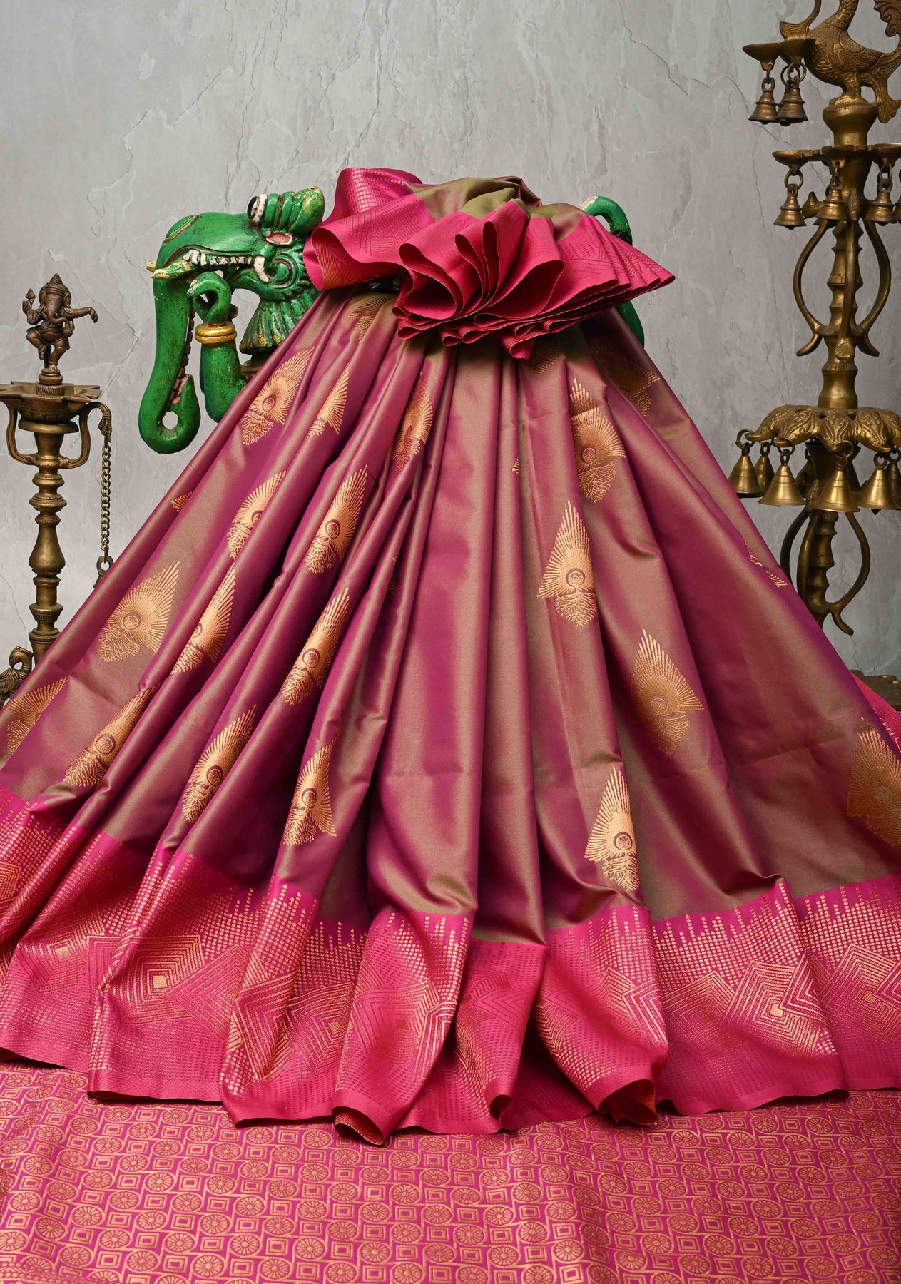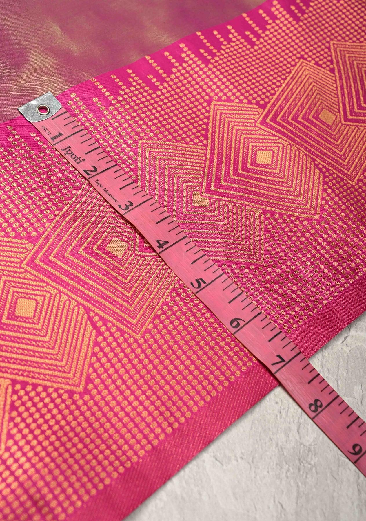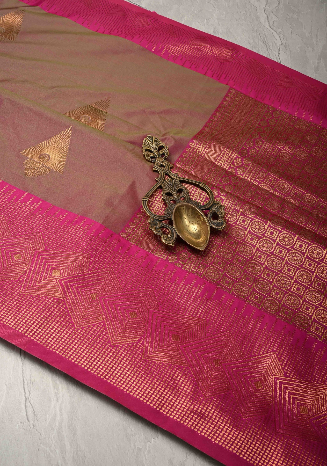 Green-Pink Dual Tone Kanchi Semi Silk Saree with Zari Buttas and Contrst Zari Border