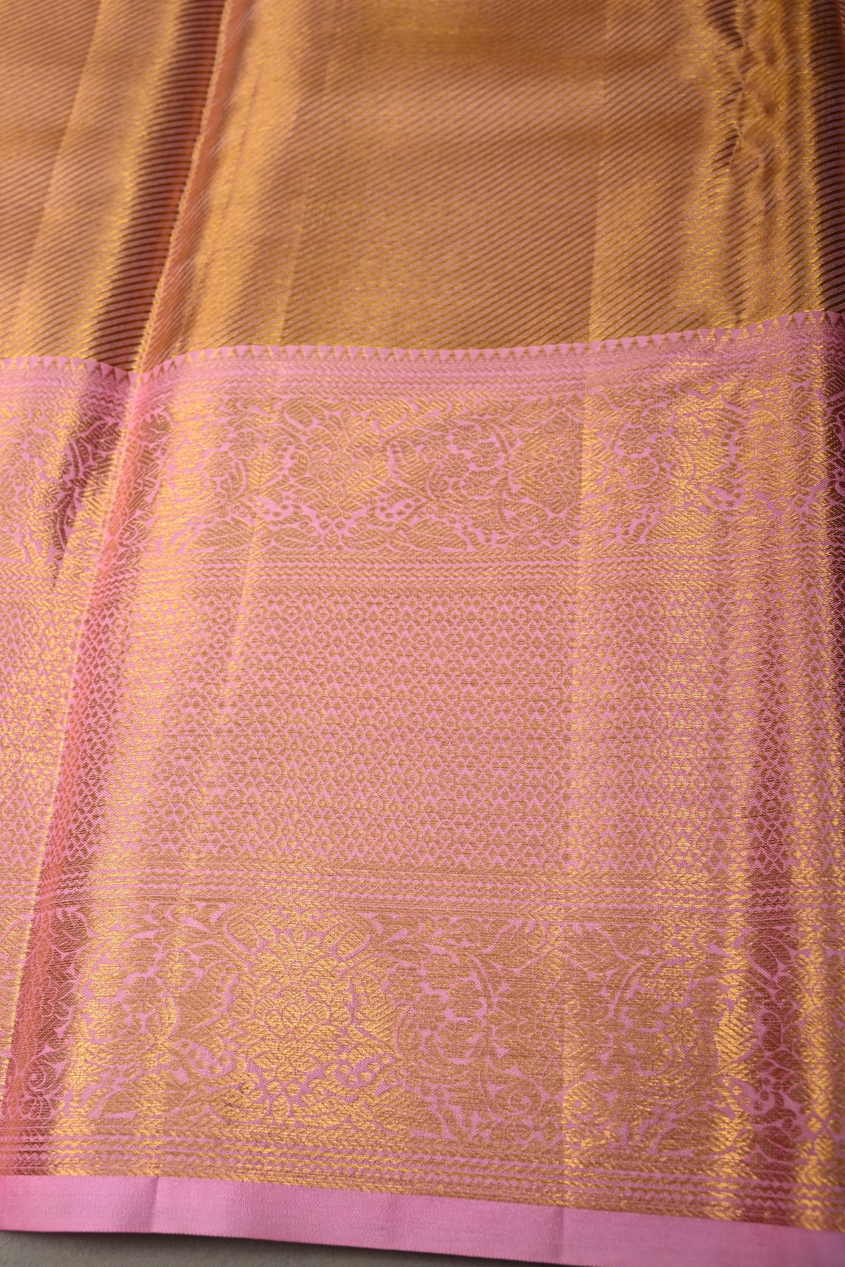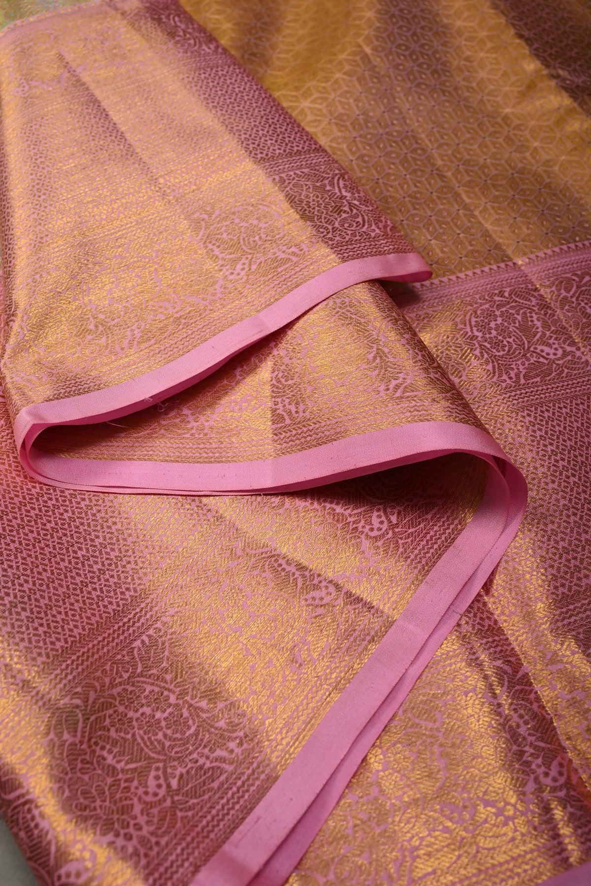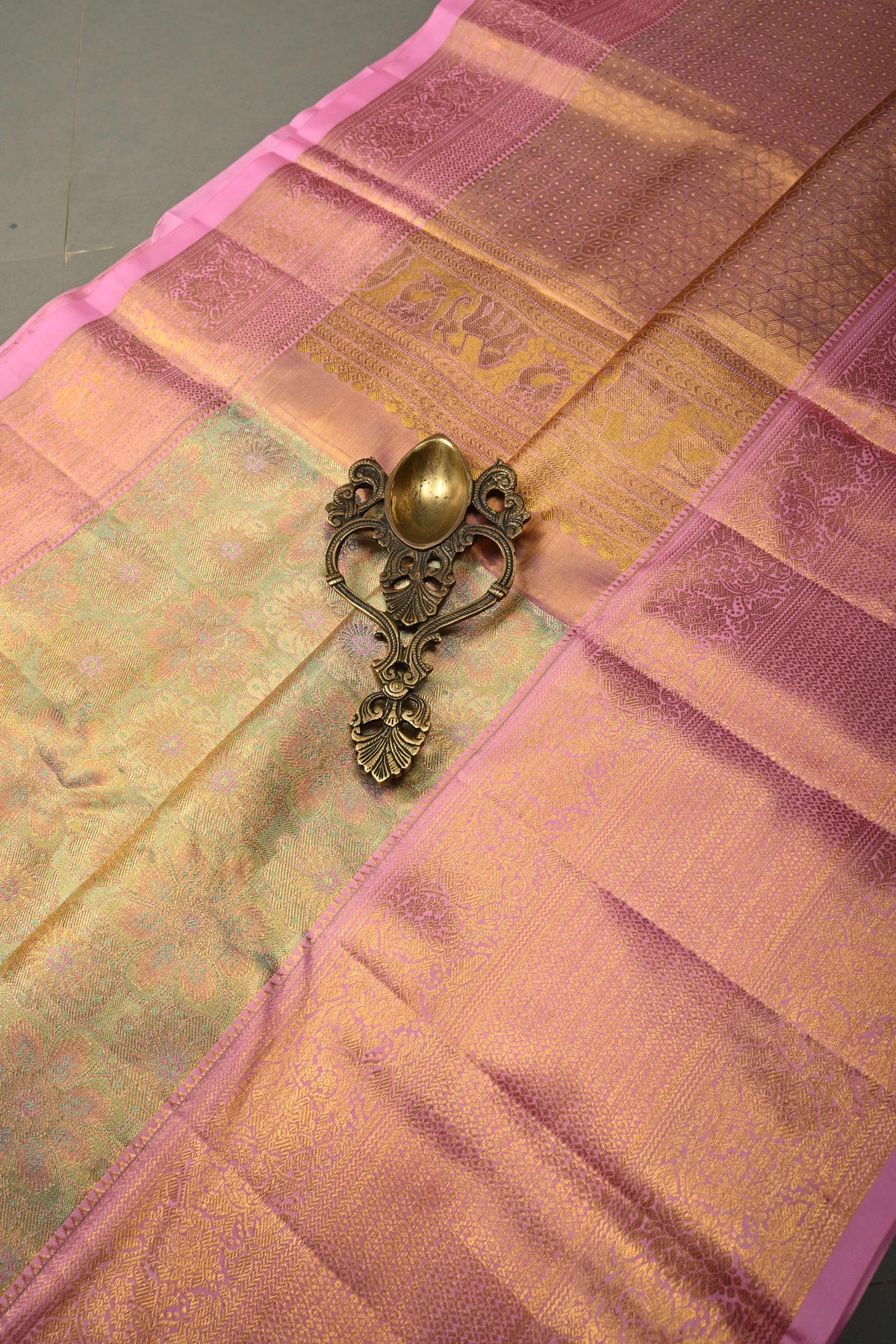Discover timeless sophistication with this Green Pure Kanjivaram Tissue Silk Saree, a masterpiece of traditional craftsmanship. Woven from tissue silk, this saree features an intricate Meenakari floral brocade that beautifully enhances its green hue. The elegant contrast zari border adds depth and grandeur, creating a striking visual appeal. Perfect for weddings, festive celebrations, and special occasions, this saree offers a graceful drape with a subtle sheen that exudes refined charm. Pair it with classic gold jewelry and a complementary blouse for a stunning traditional ensemble.