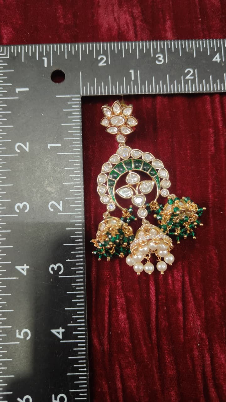 Handcrafted Kundan Chandbali Earrings with Triple Jhumka Statement Drops