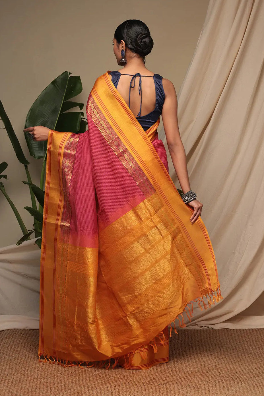 Disclaimer: This is a genuine handwoven saree and may have slight irregularities that are a natural outcome of the human involvement in the process.