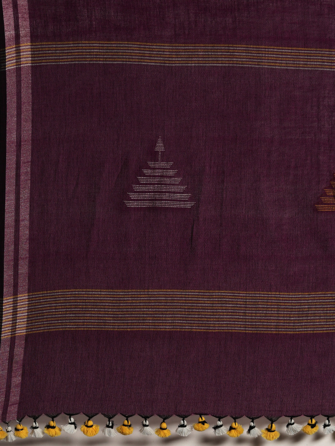 This saree is ready to wear with fall and pico done. Tassels adorn the pallu and add more grace to it.