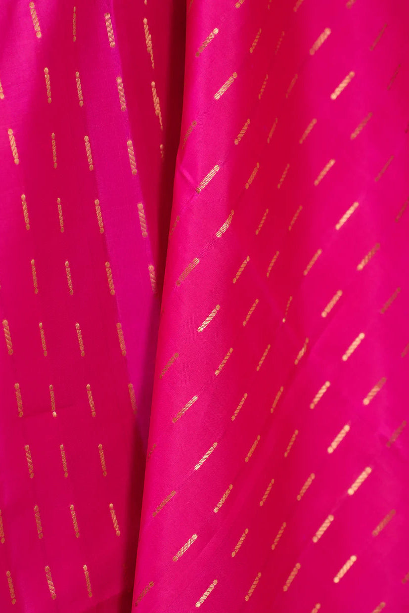 This pink soft silk handloom saree is a delightful blend of comfort, colour, and craftsmanship. Handwoven in fine silk, it features delicate zari motifs inspired by malli moggu (jasmine buds) that add a gentle shimmer across its soft, fluid body.