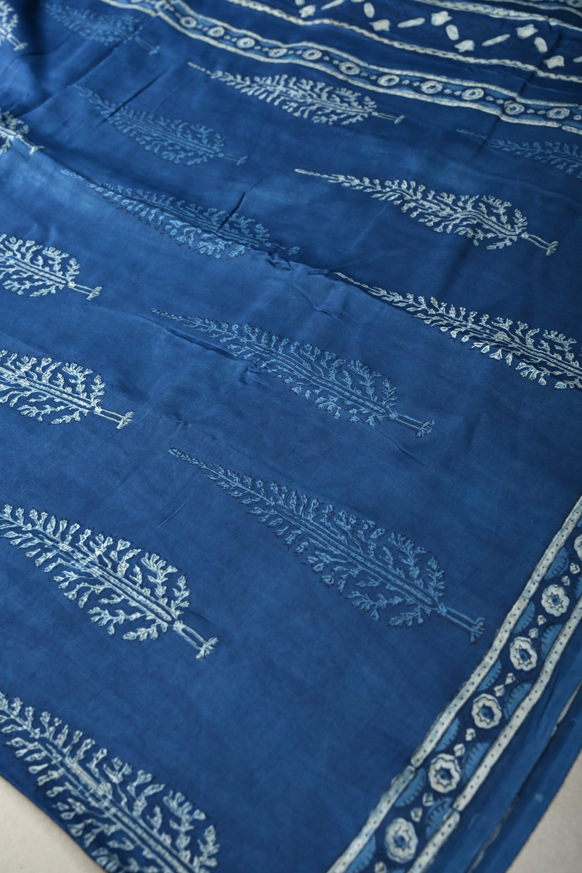 Elegant and versatile, this Indigo Modal Silk Saree showcases the timeless charm of traditional Bagru hand block printing. Crafted from soft, lightweight modal silk, the saree drapes gracefully, offering comfort and a sophisticated ethnic look.