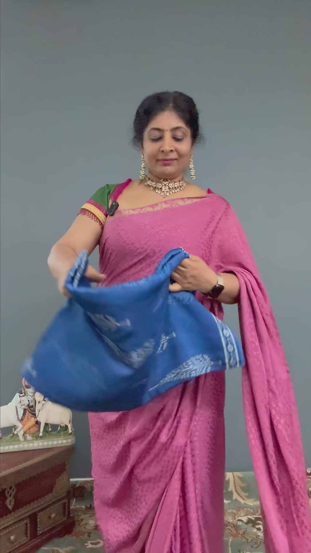 The body features exquisite Bagru hand block prints, while a subtle border adds structure and highlights the saree’s indigo base. Perfect for casual gatherings, festive occasions, and cultural events, this saree blends artisanal craftsmanship with modern wearability. Pair it with a matching or contrasting blouse for a complete traditional ensemble.