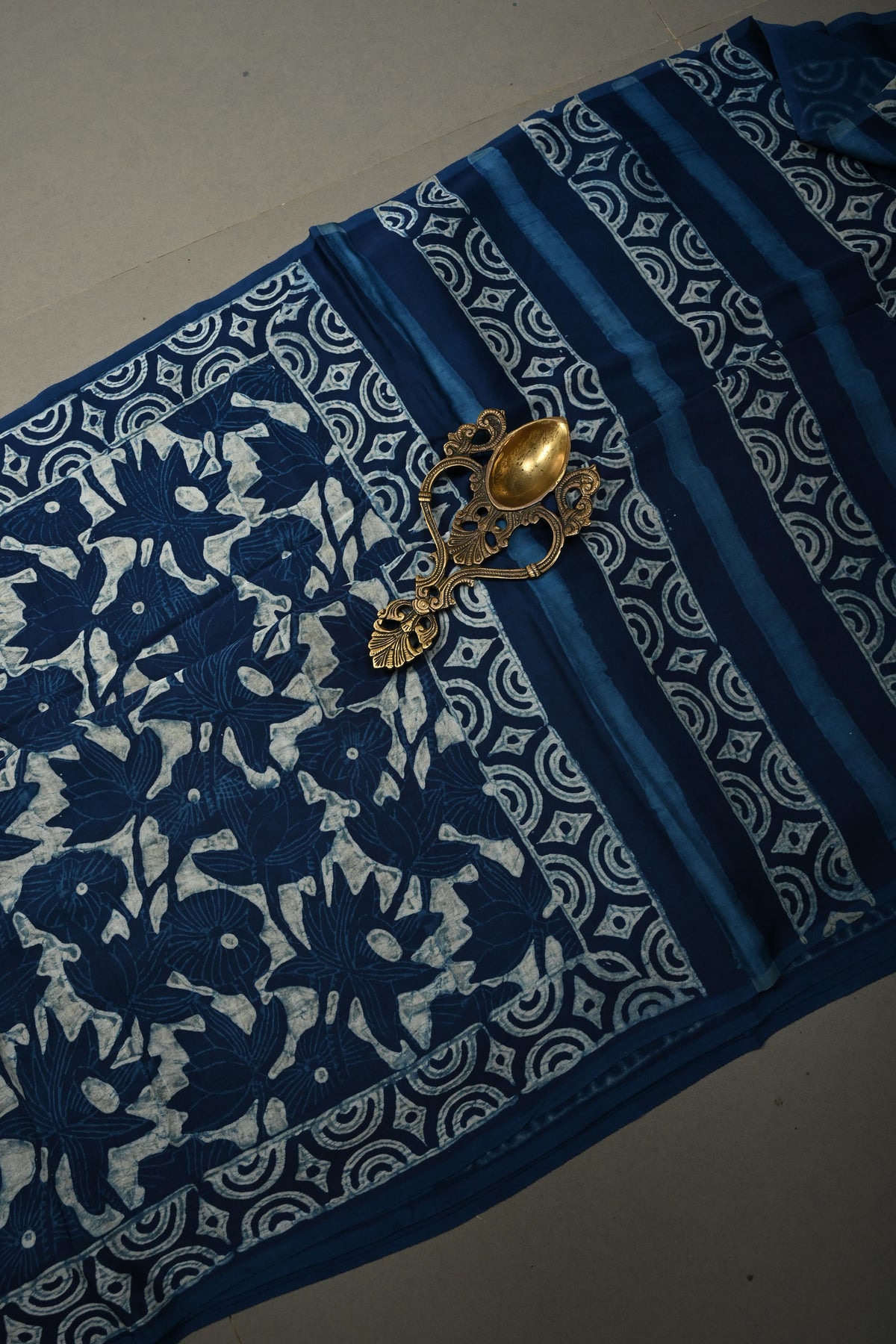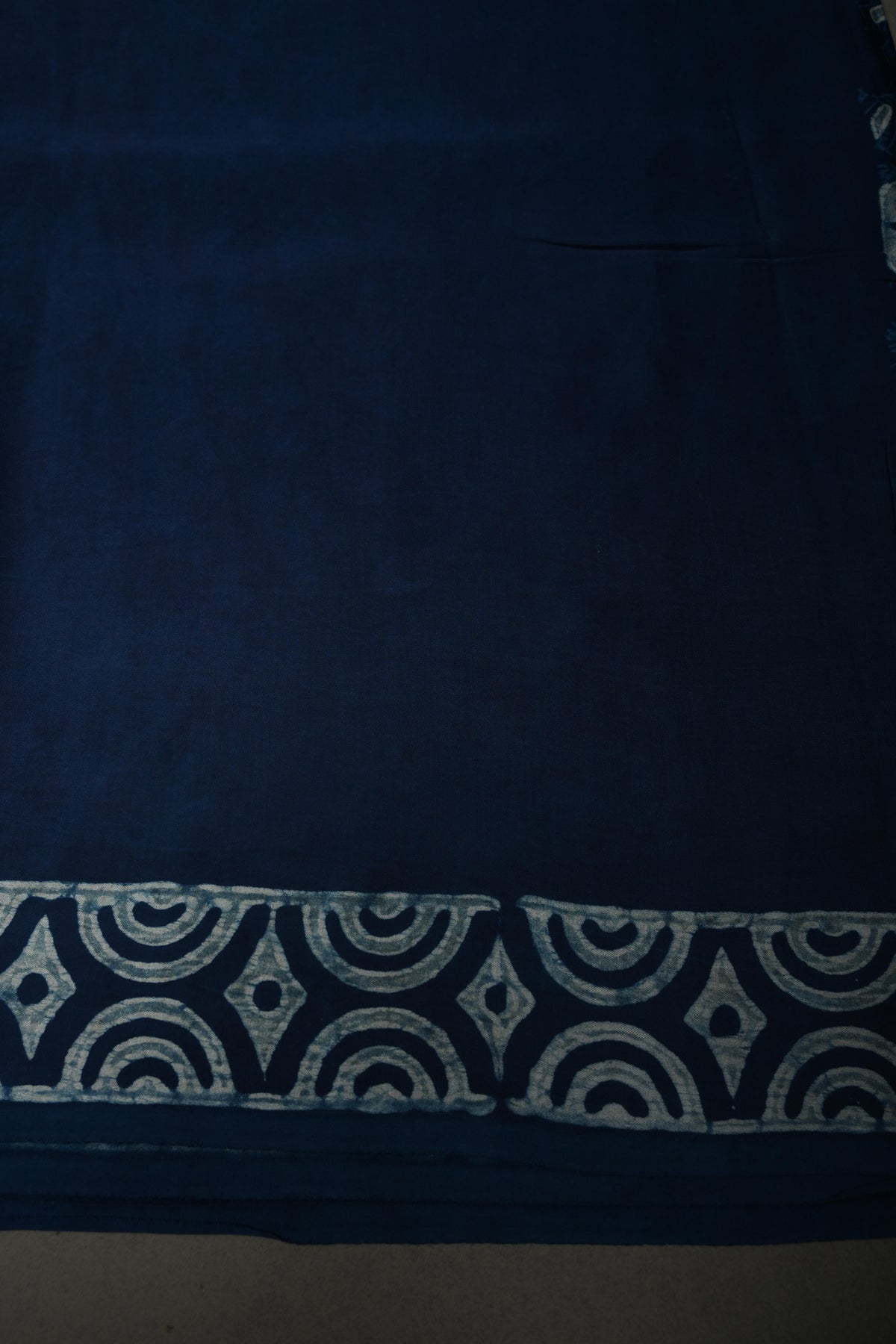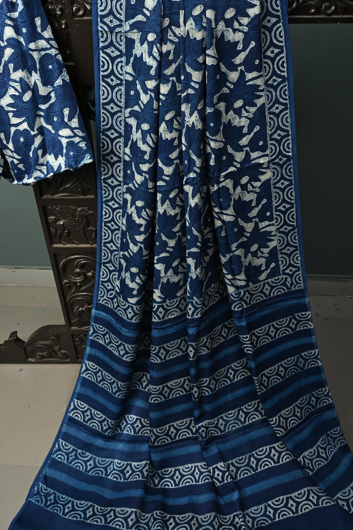 Indigo Modal Silk Saree with Bagru Hand Block Print and Border