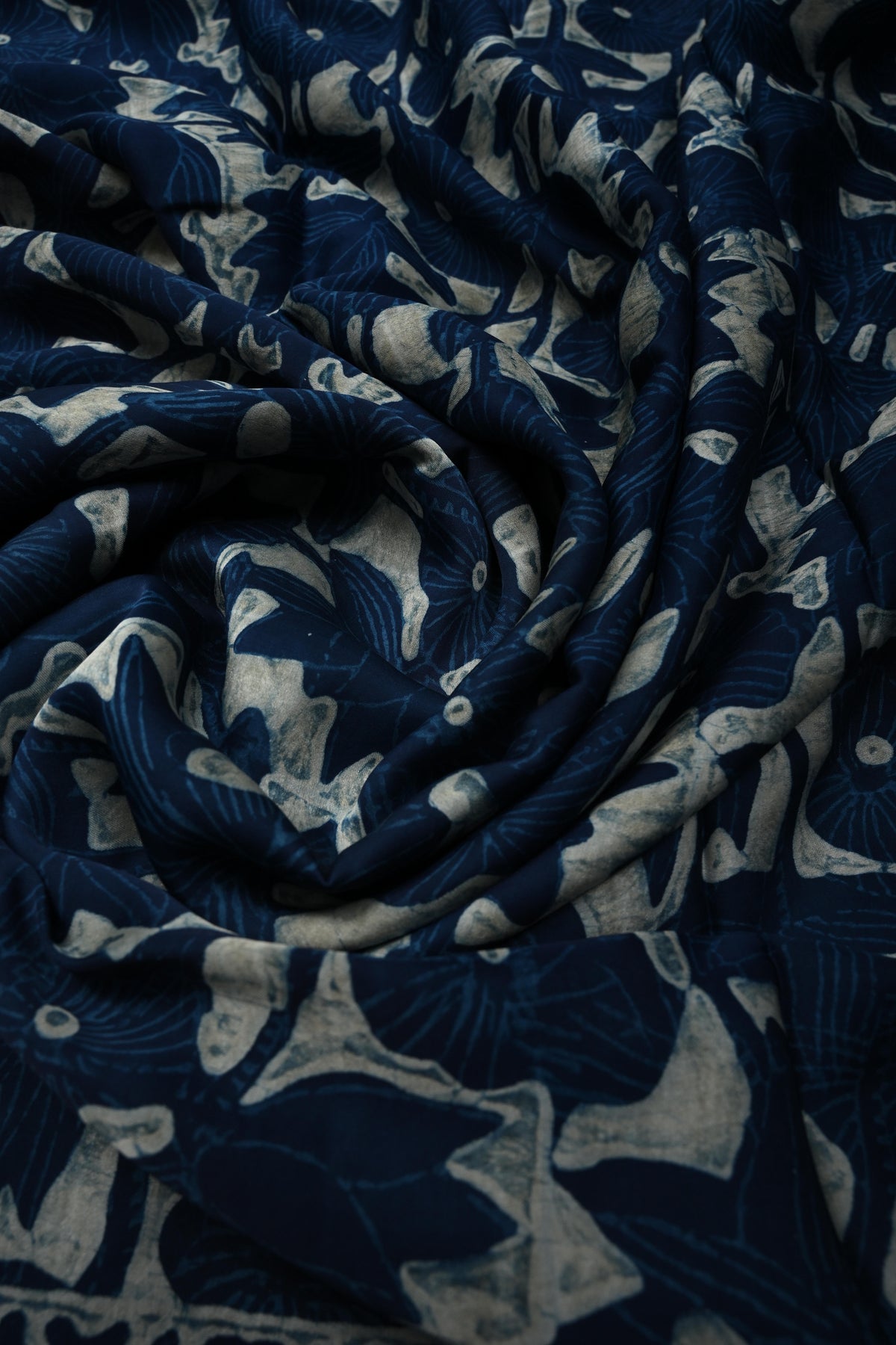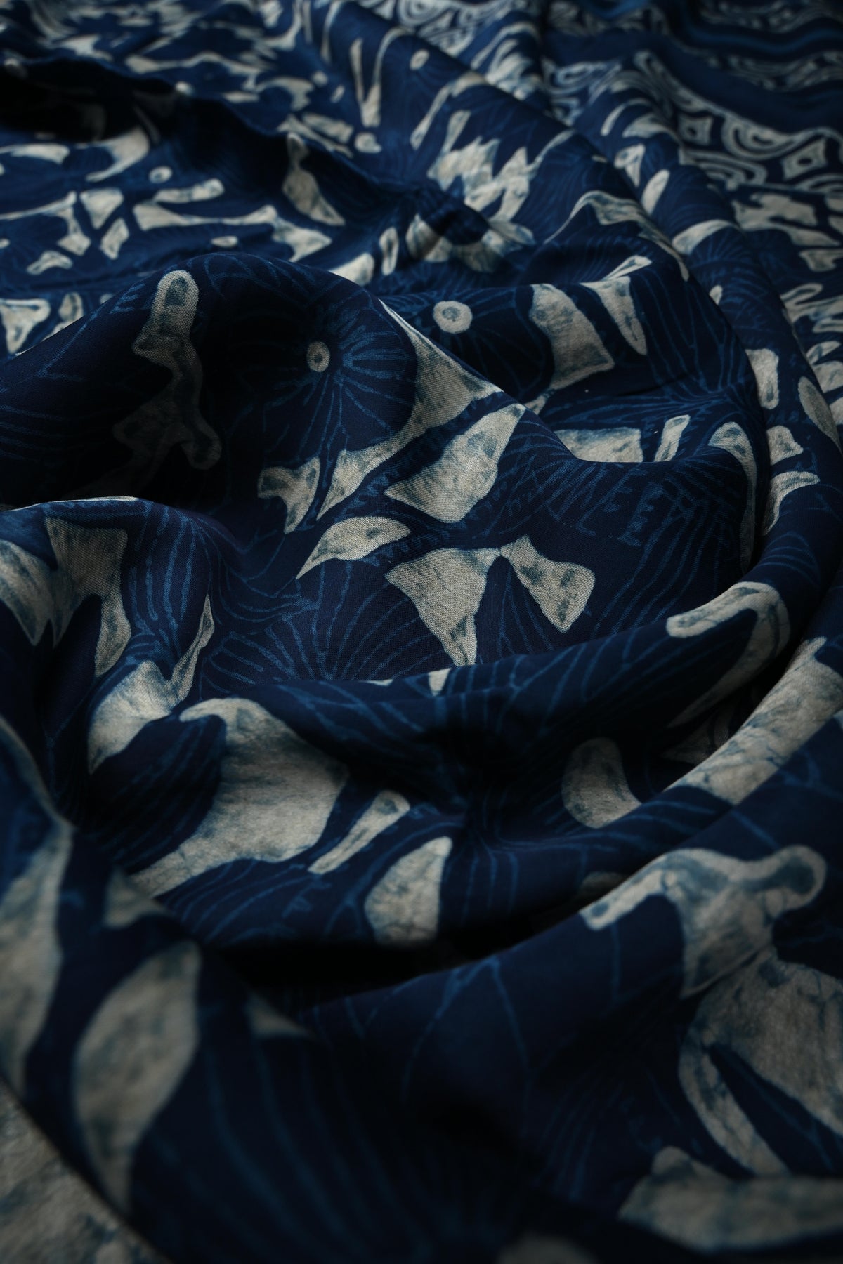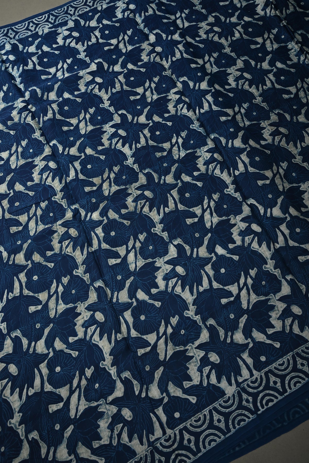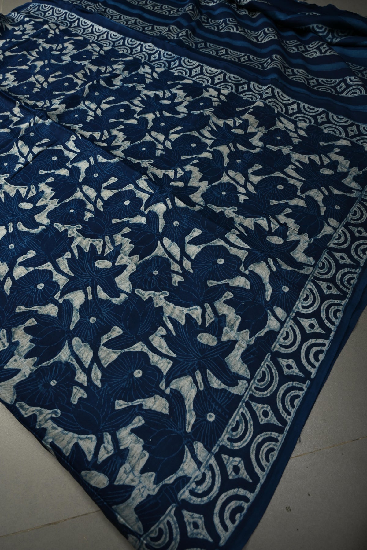 Indigo Modal Silk Saree with Bagru Hand Block Print and Border