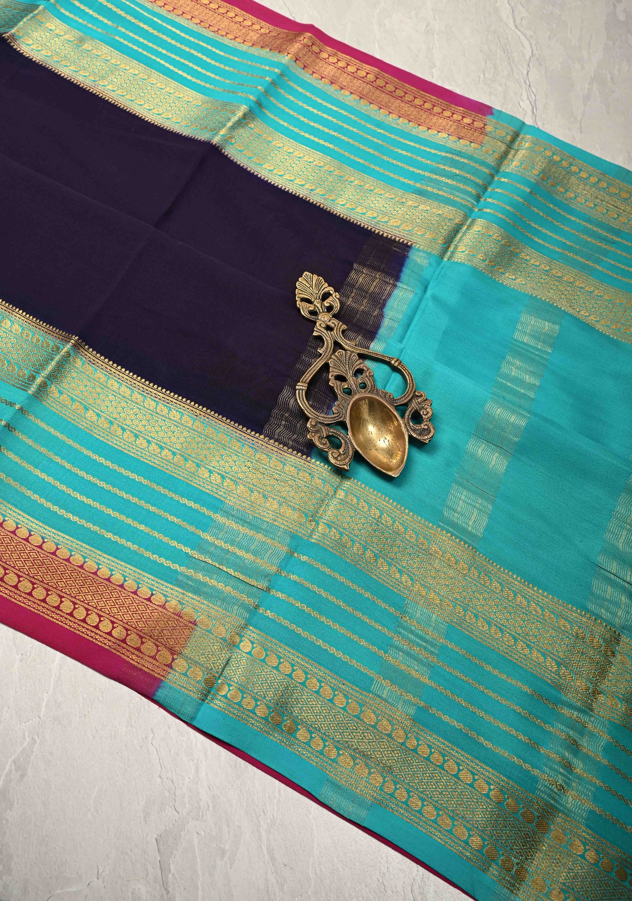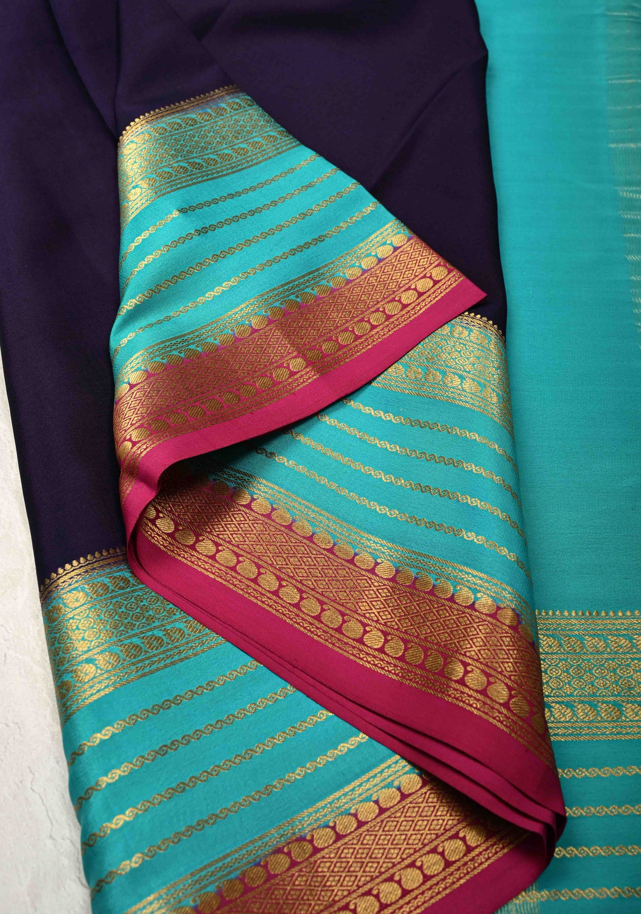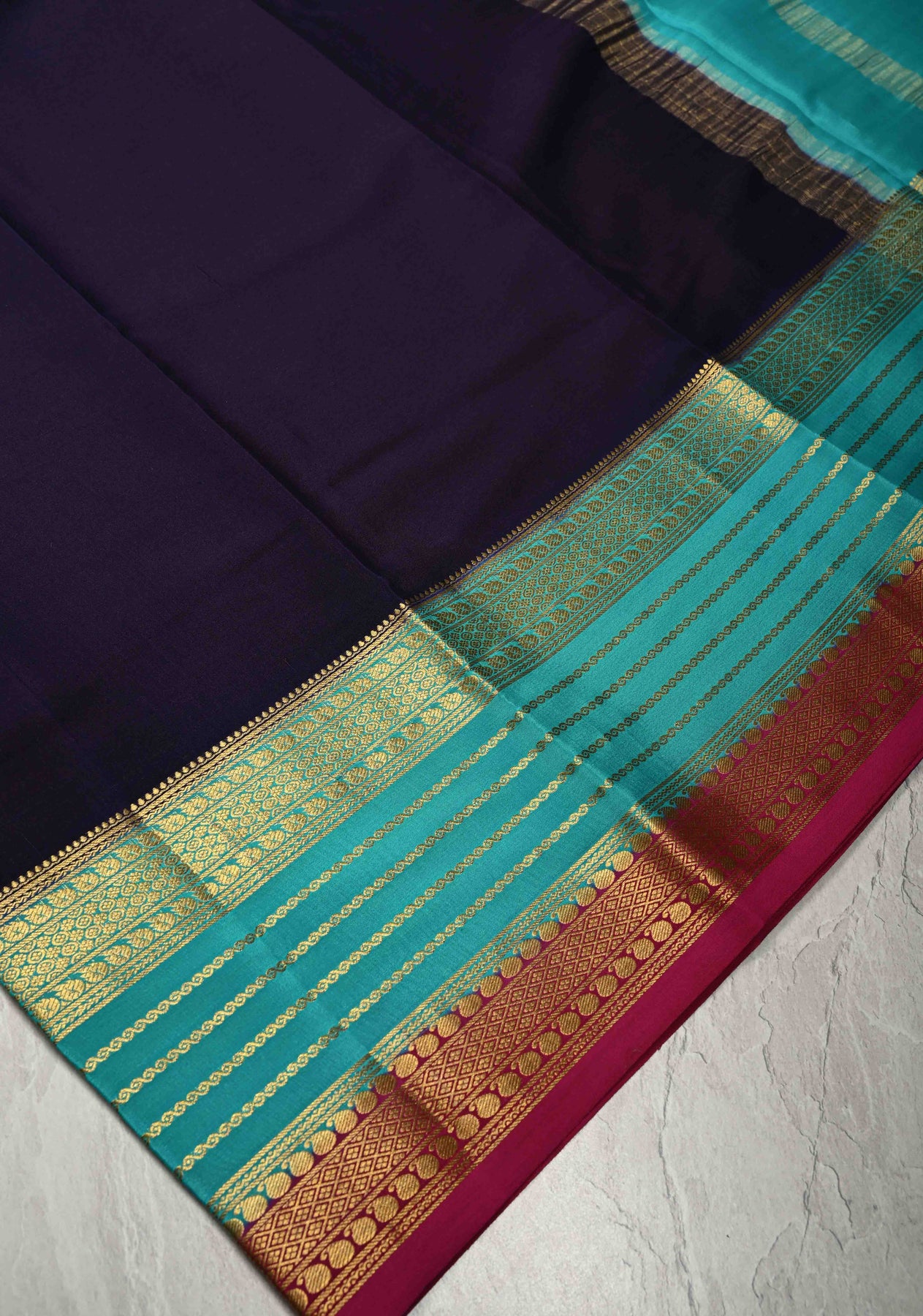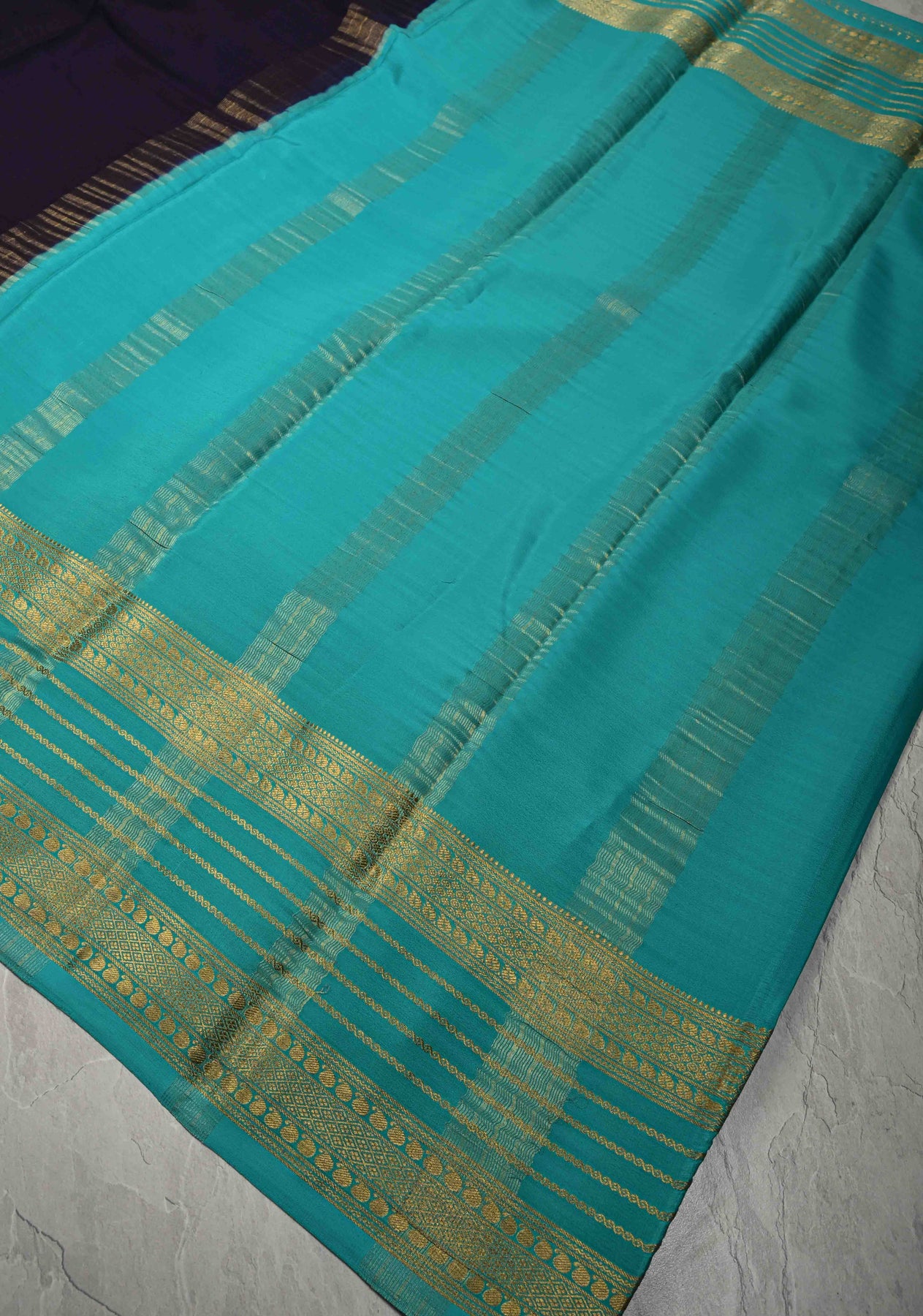 This Ink Purple Mysore Silk Saree exudes timeless charm and sophistication. Crafted from pure silk, it features a purple hue reminiscent of ripe Ink , offering a regal and graceful appearance. The saree is beautifully accented with contrast zari borders that add a striking visual appeal, enhancing its traditional allure. Lightweight and smooth in texture, it drapes effortlessly, making it a perfect choice for weddings, festive celebrations, or formal gatherings. A harmonious blend of heritage craftsmanship and refined style, this saree is a true wardrobe classic.