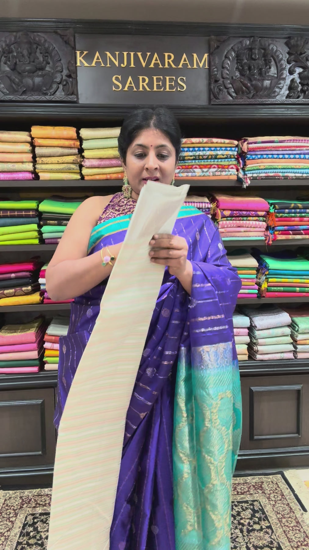 This ivory contemporary pure Kanjivaram silk saree features elegant silver zari and pastel stripes woven across the body, creating a soft yet sophisticated aesthetic. The subtle play of modern hues is beautifully complemented by a classic zari border that adds a touch of traditional grandeur. Crafted from pure silk with fine Kanchipuram weaving, this saree is perfect for weddings, festive occasions, and refined celebrations.
