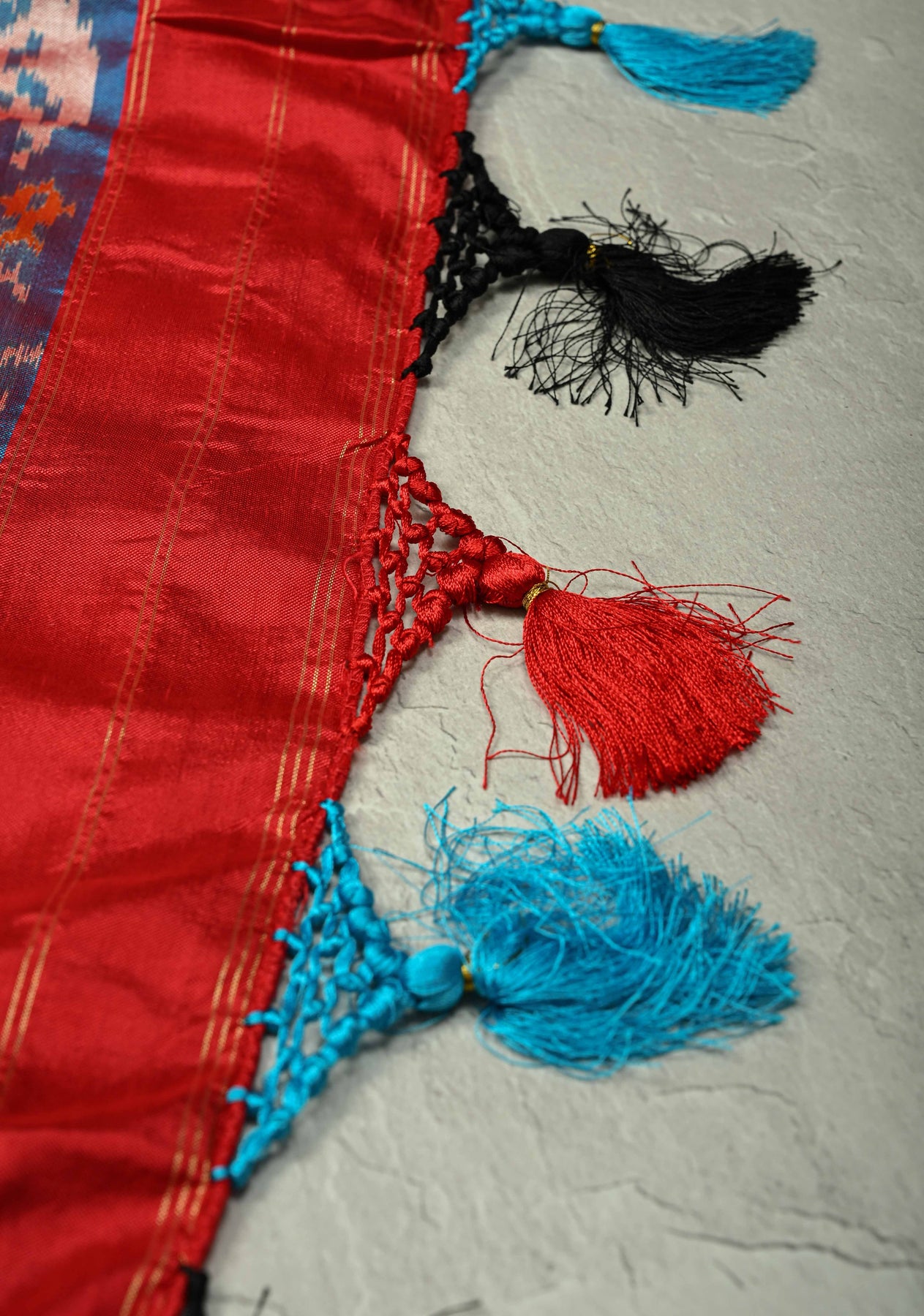 This saree is ready to wear with fall and pico done. Handmade silk tassels adorn the pallu and add more grace to it. An unstitched blouse fabric is included.