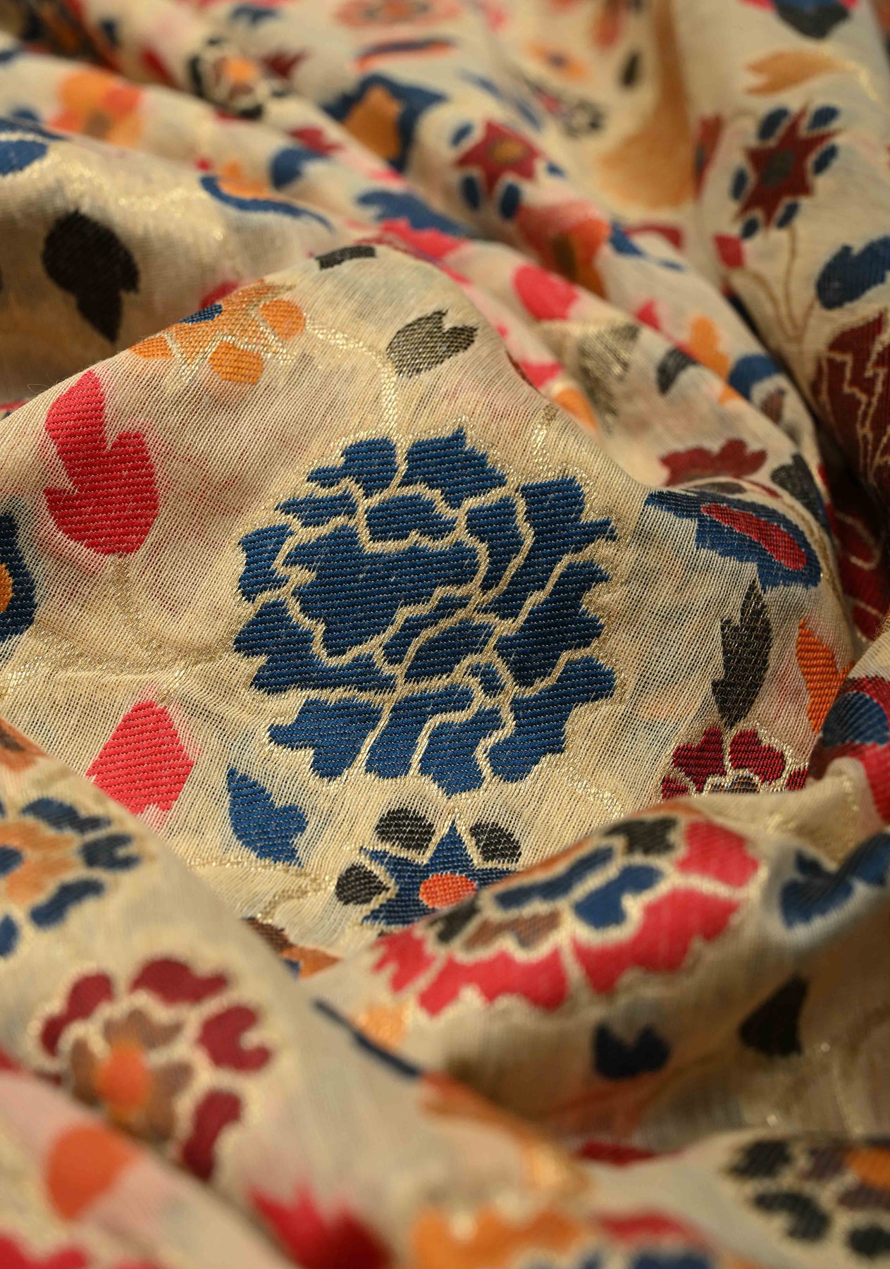 Its neutral beige palette provides a versatile canvas for the vibrant floral details, making it an ideal choice for both office elegance and festive gatherings. A true masterpiece of understated luxury