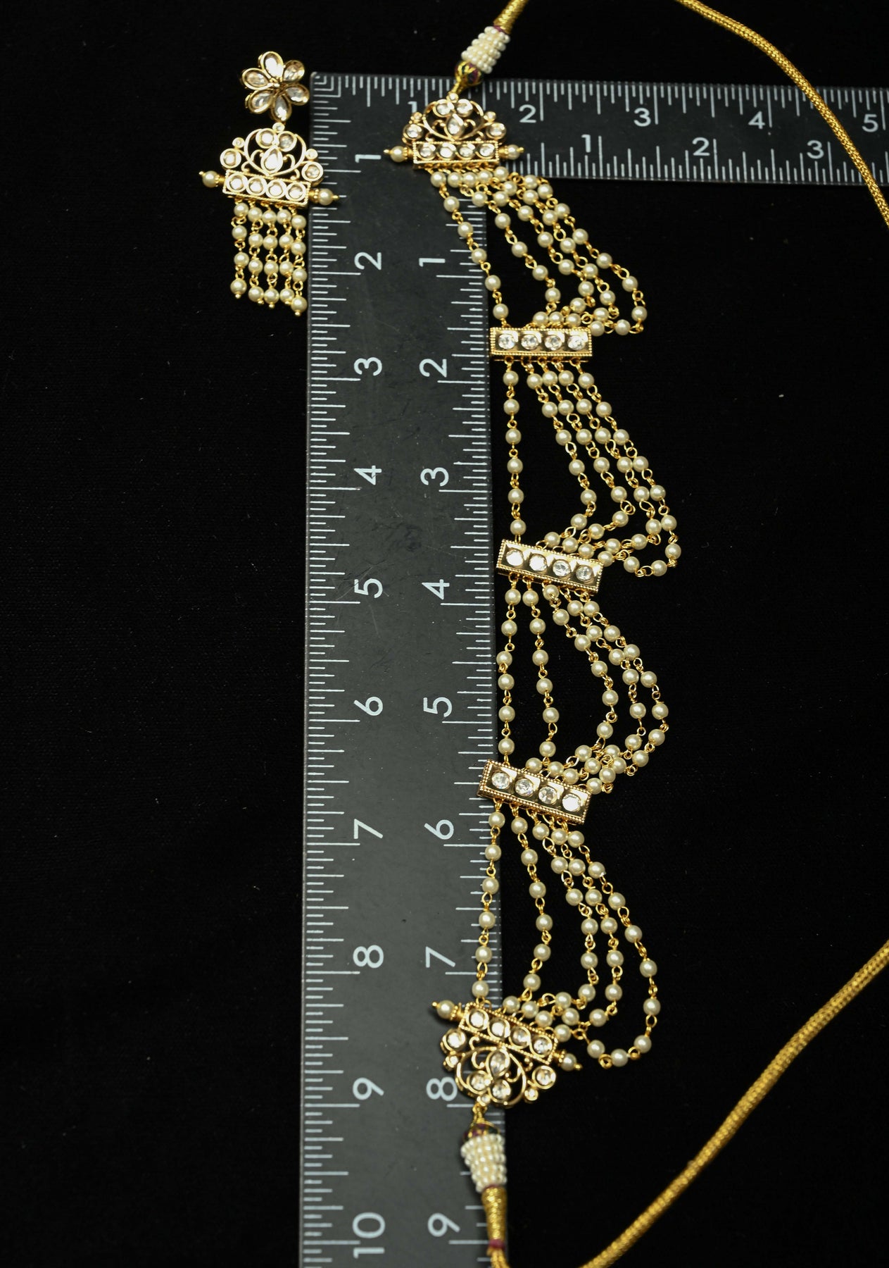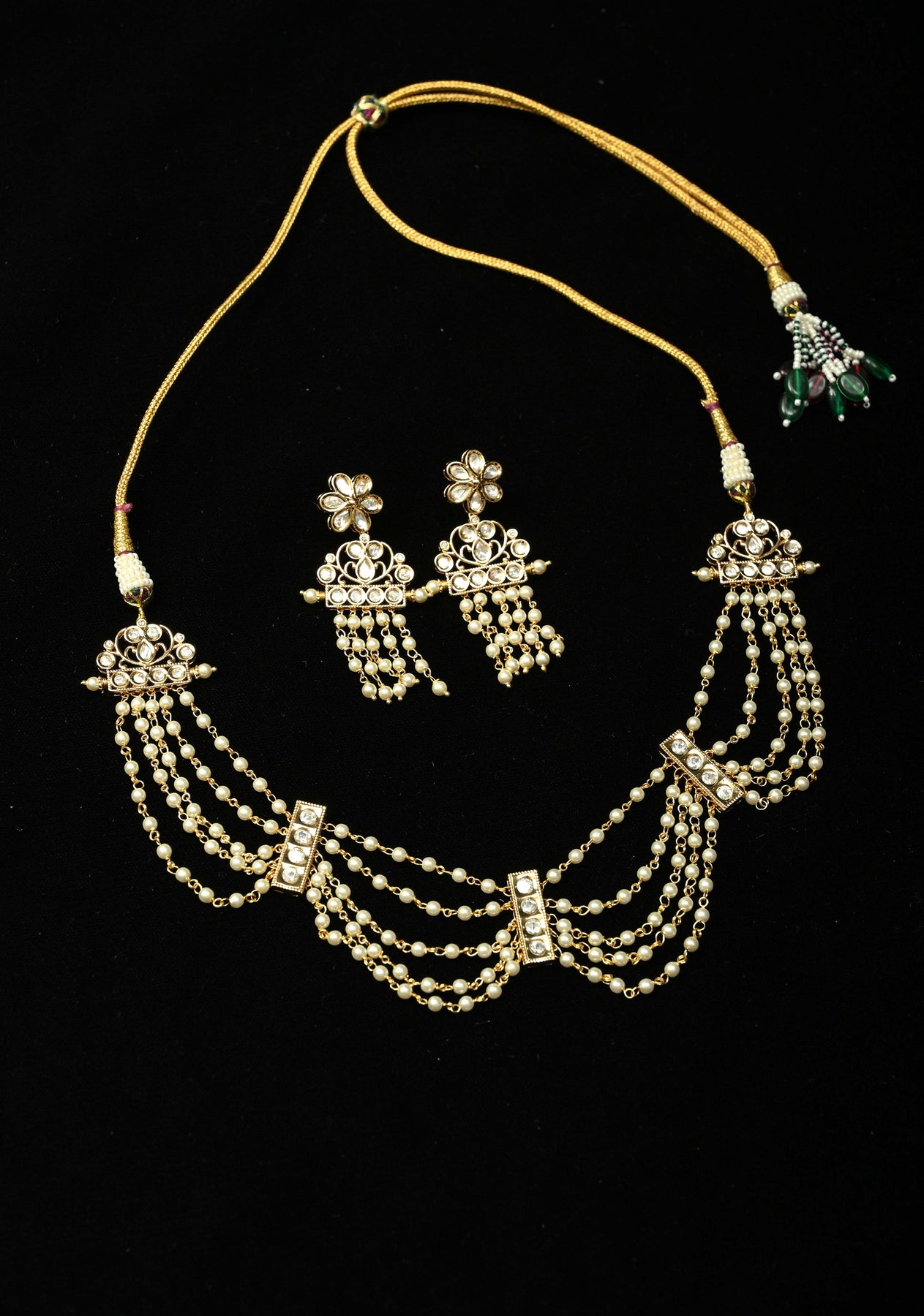 Elevate your style with our Temple Necklace set. Featuring a stunning blend of white and gold, this long necklace set boasts a traditional temple style. Pair it with other necklaces to create a trendy layered look. Perfect for a touch of cultural charm