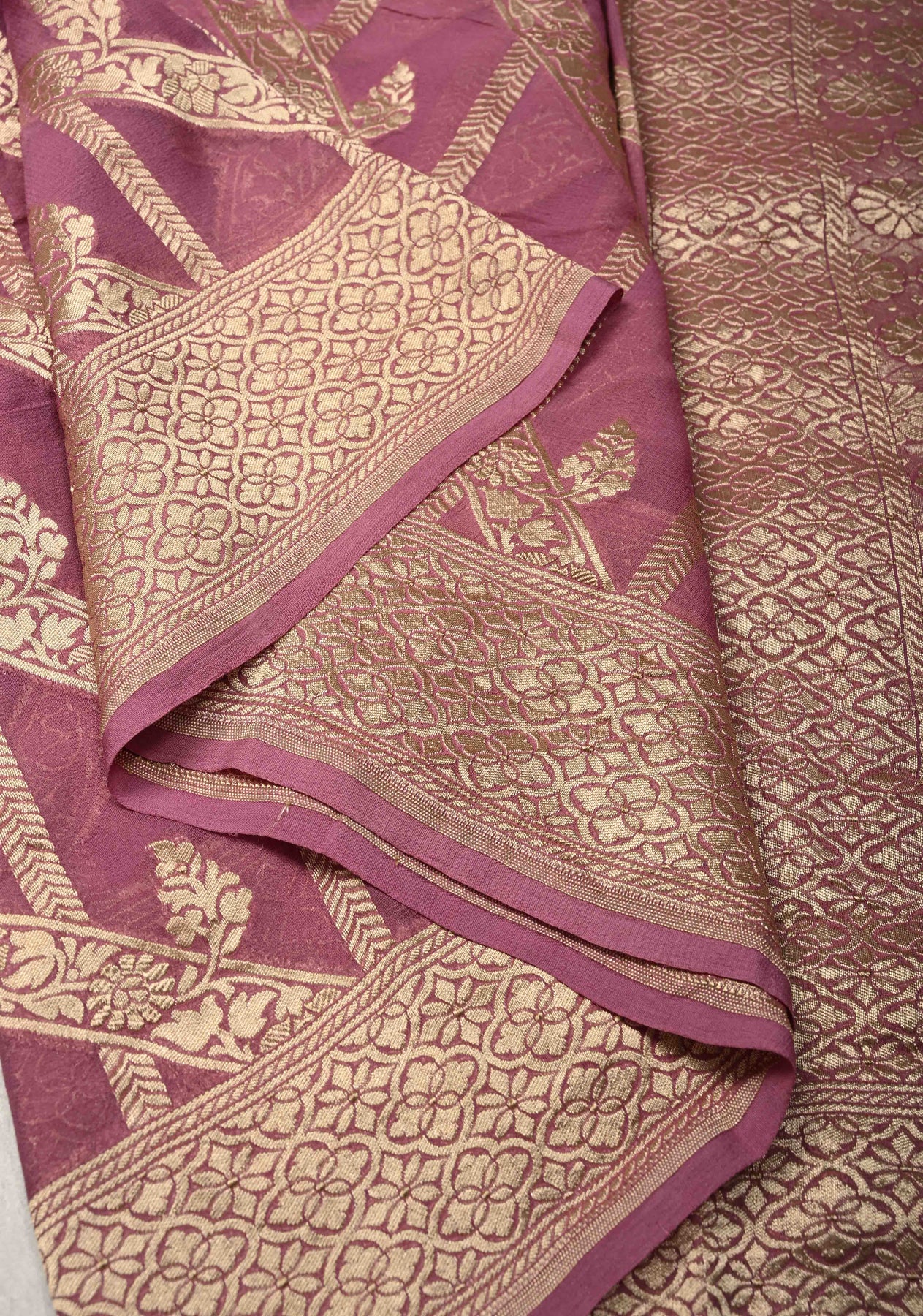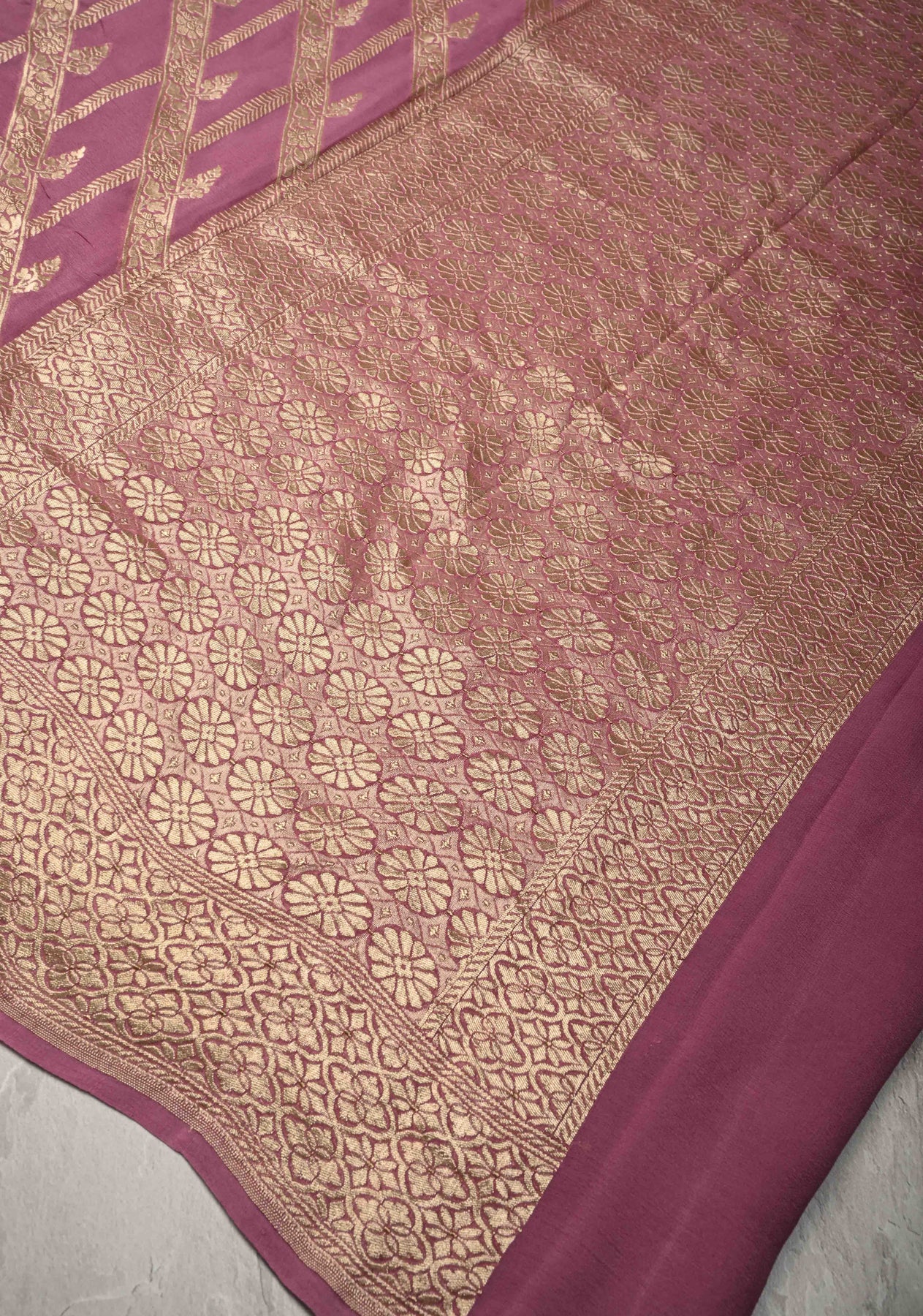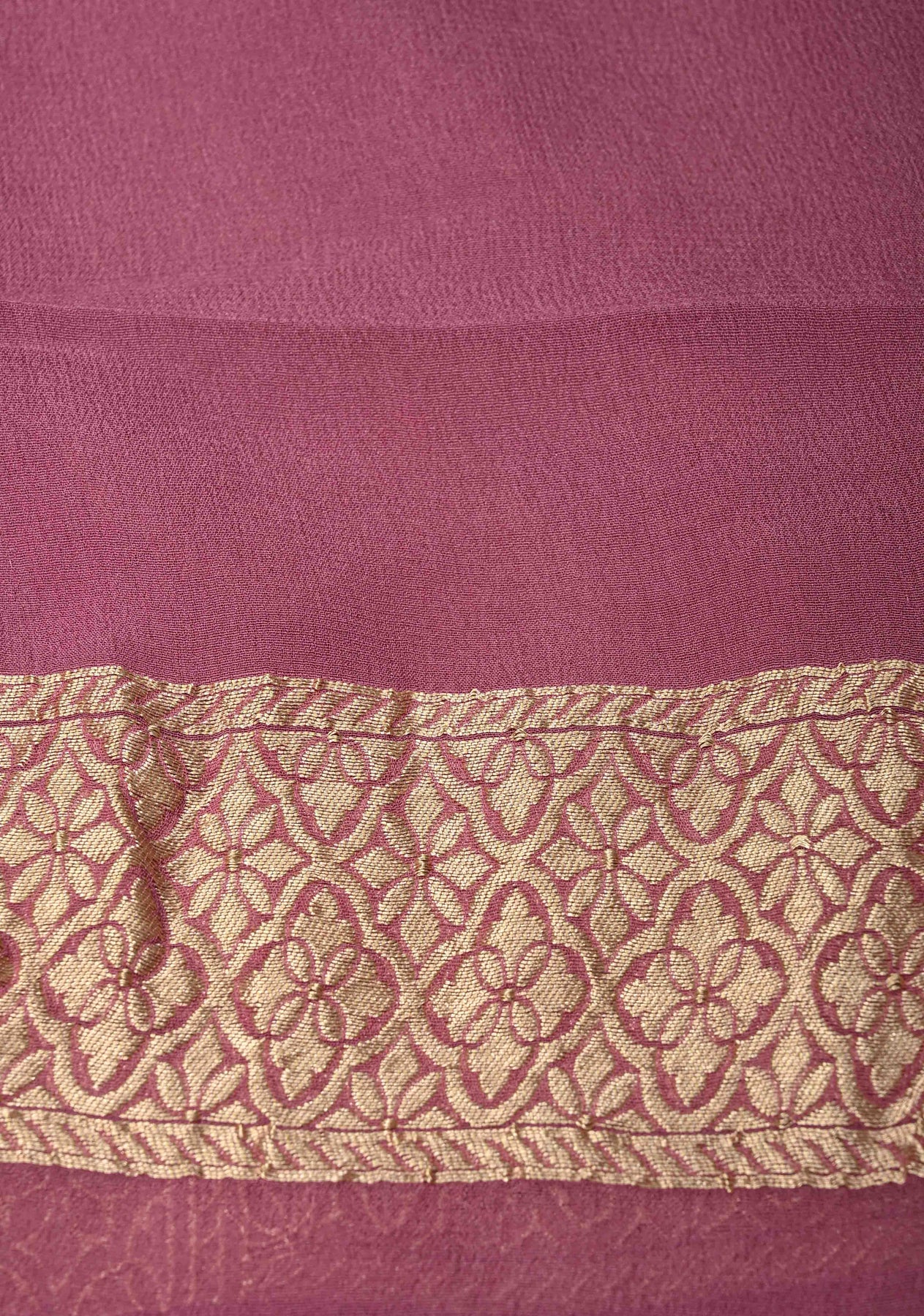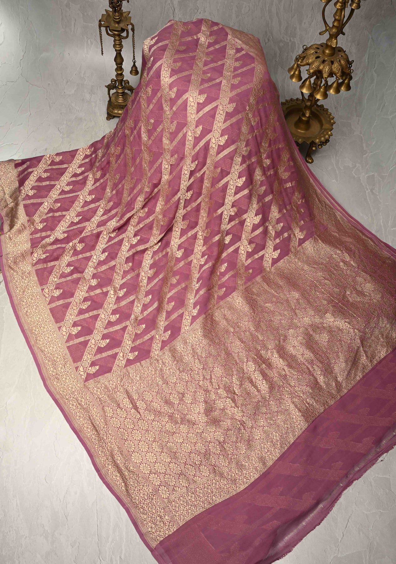 Onion Pink Banarasi Georgette Silk Saree with Geometric Design and Zari Border | SILK MARK CERTIFIED