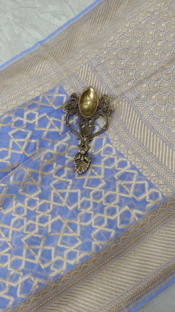 Lilac Banarasi Georgette Silk Saree with Abstract Brocade Jaal and Zari Border | SILK MARK CERTIFIED