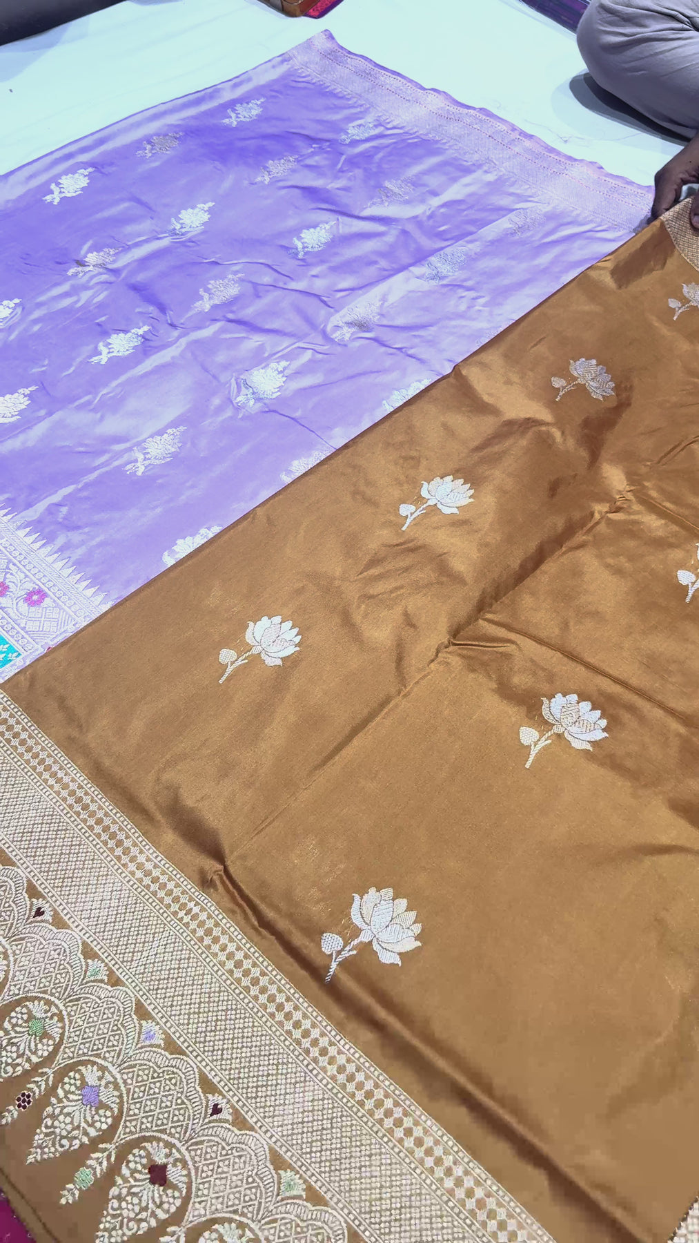 The Lilac Banarasi Pure Katan Silk Saree is an exquisite blend of delicate hues and intricate craftsmanship. Woven from pure Katan silk, this saree showcases a soft, soothing lilac shade that brings a graceful charm to any occasion. The body is beautifully adorned with elegant Sona Rupa floral buttas in gold and silver zari, adding a touch of traditional finesse. Complementing these are striking geometric Meenakari buttas woven into the wide zari border, creating a captivating contrast that enhances the saree’s regal appeal. Perfect for weddings, festive events, and formal celebrations, this saree embodies timeless elegance and artisanal excellence.