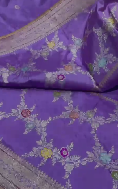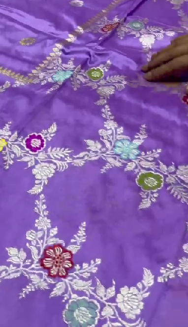Lilac Kadhuwa Jungla Jaal on Pure Banarasi Katan silk saree with Zari Buttas and Zari Border   | SILK MARK CERTIFIED