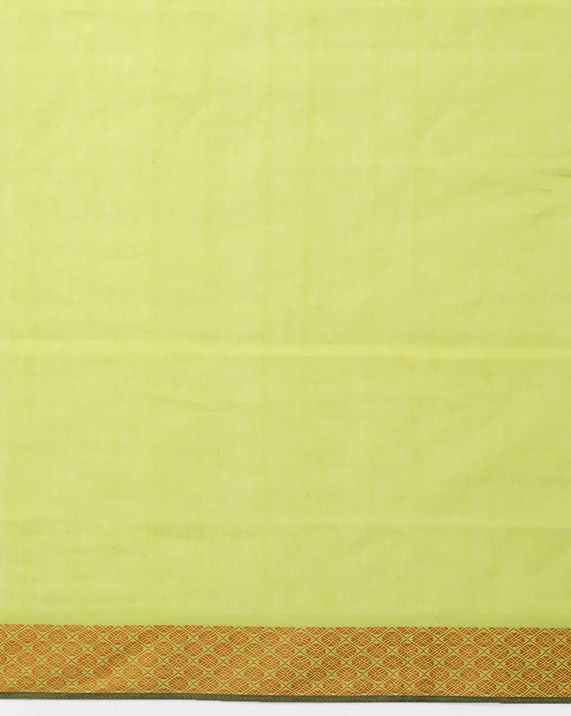 This Lime Green Golden Jacquard Cotton Saree is a radiant fusion of traditional elegance and modern charm. Woven with fine cotton for a soft, breathable feel, it features intricate golden jacquard patterns that shimmer beautifully against the refreshing lime green base. Lightweight and graceful, this saree drapes effortlessly, making it ideal for festive occasions, celebrations, or elegant day events. Its vibrant hue and subtle sheen create a timeless, sophisticated look.