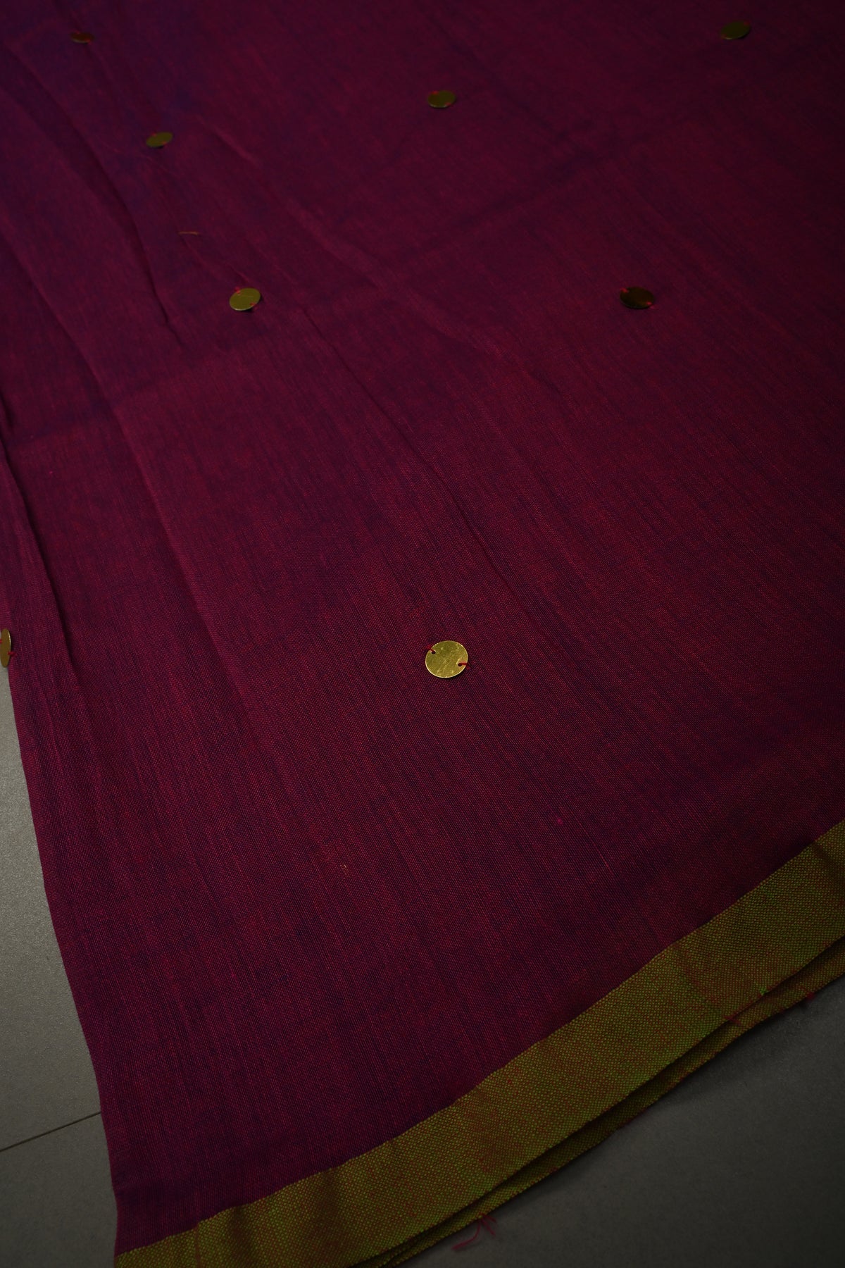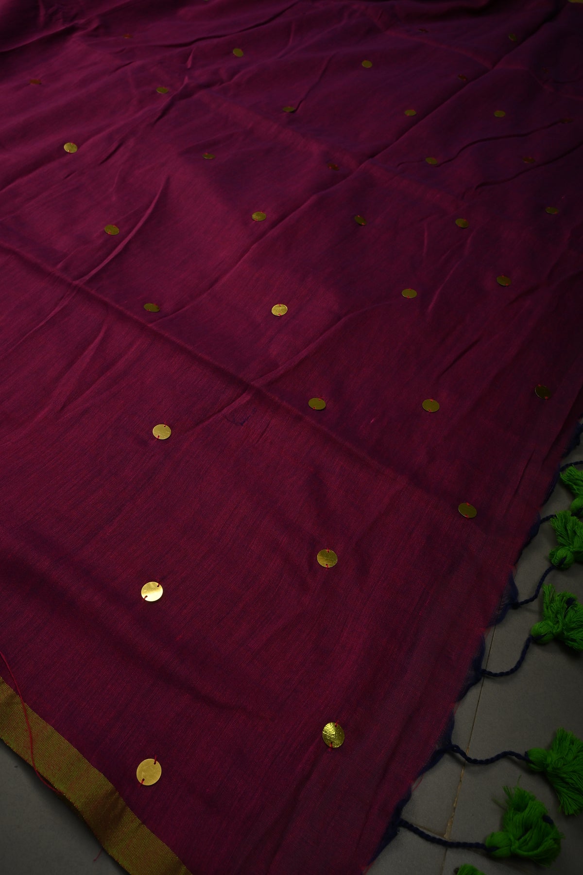 The Magenta Mercerized Mul Cotton Saree is a striking blend of contemporary style and traditional charm. Crafted from mul cotton, it offers a soft, breathable feel, ensuring comfort with every wear. The magenta color adds a bold, dynamic touch, while the intricately designed Tikki work along the borders enhances the saree's ethnic appeal. Long, elegant tassels at the pallu provide a graceful finish, completing the look with a sense of movement and beauty. Perfect for weddings, festive occasions, or cultural celebrations, this saree is the perfect choice for those seeking both comfort and sophistication.