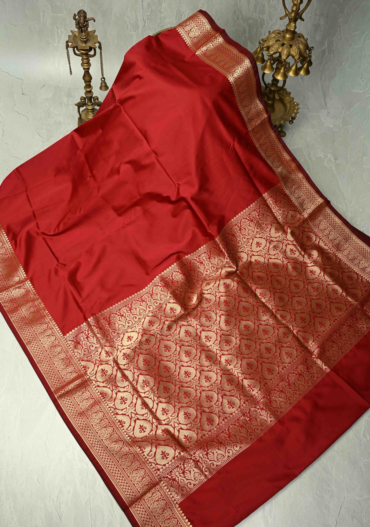 The Maroon Semi-Silk Saree with Zari Border is a timeless piece that radiates elegance and sophistication. Crafted from semi-silk fabric, it offers a smooth texture and a graceful drape. The maroon hue symbolizes luxury and refinement, while the intricately woven golden zari border adds a regal touch. Perfect for weddings, festive occasions, and cultural celebrations, this saree pairs beautifully with a contrasting blouse and traditional jewelry to create a classic ethnic look.