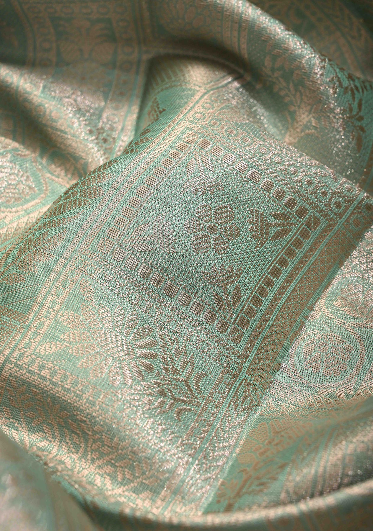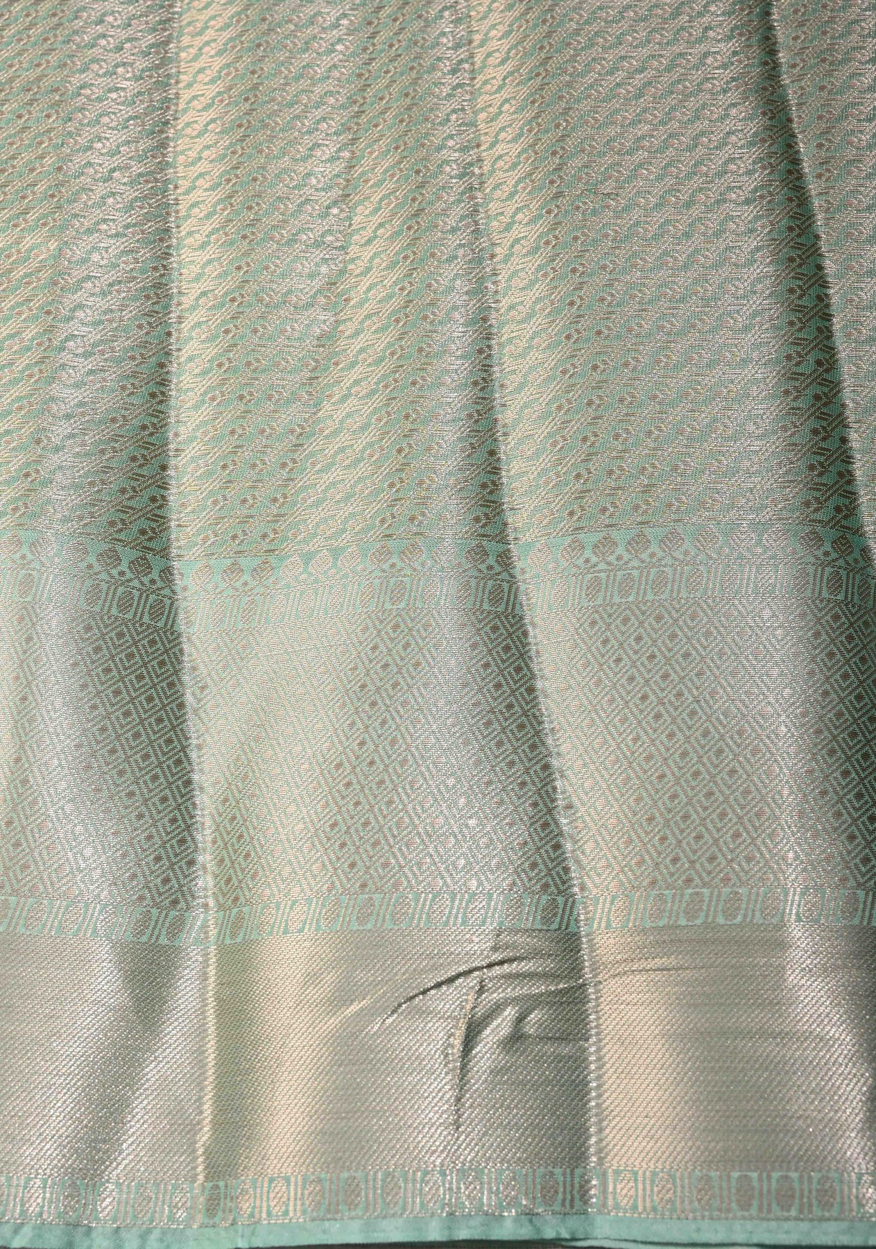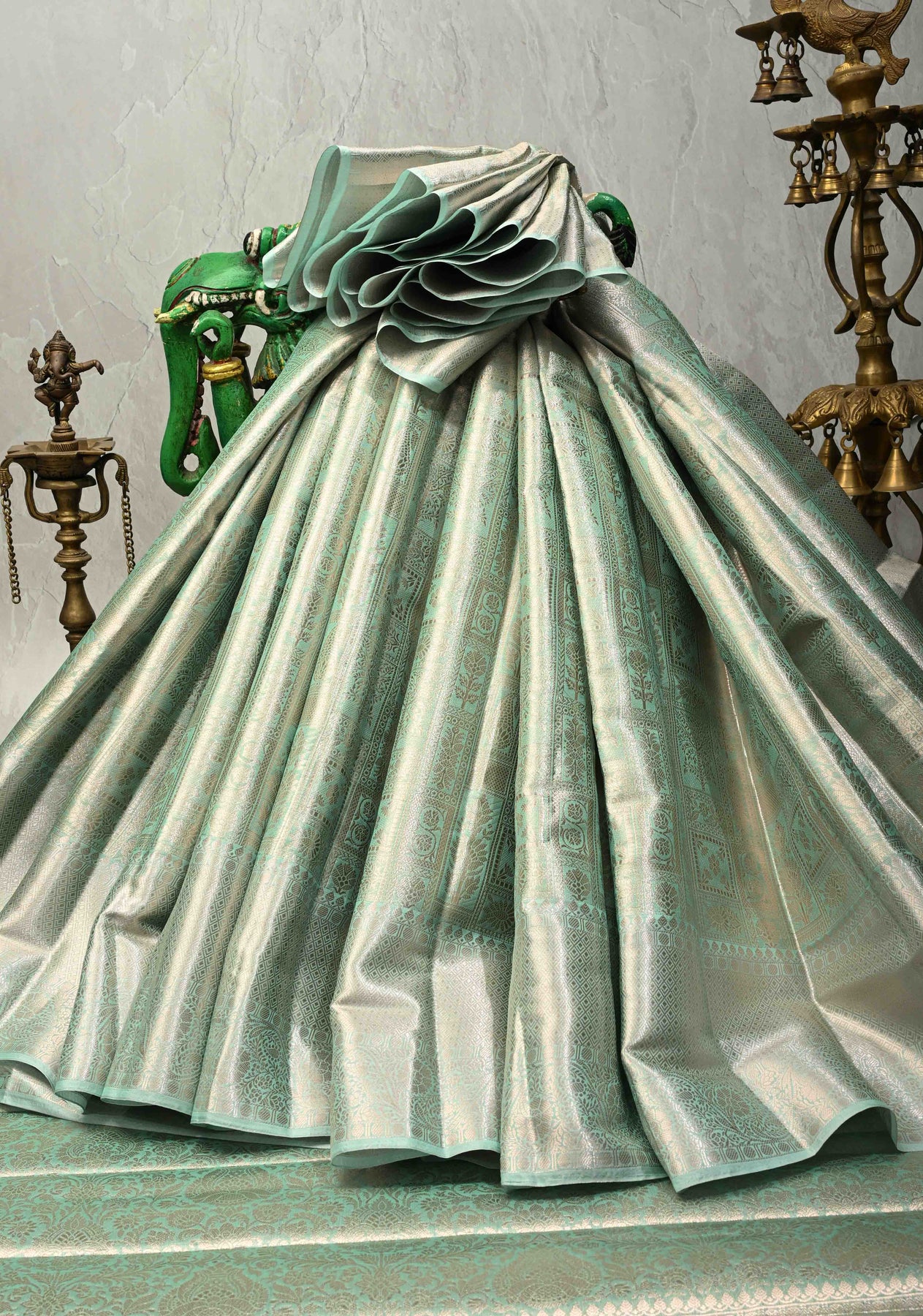 Mint green Kanjivaram Tissue Semi Silk Saree with Patola Brocade and Zari Border