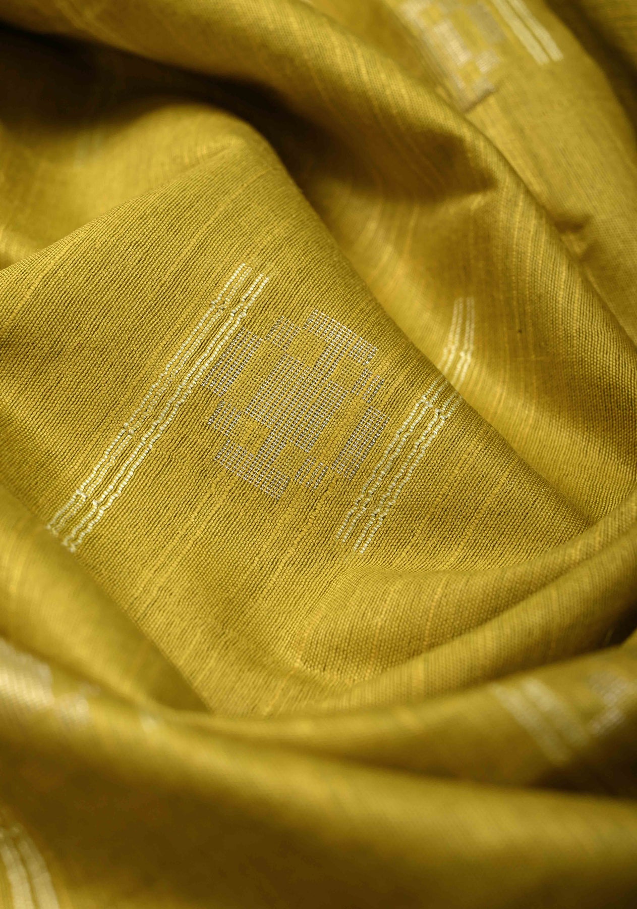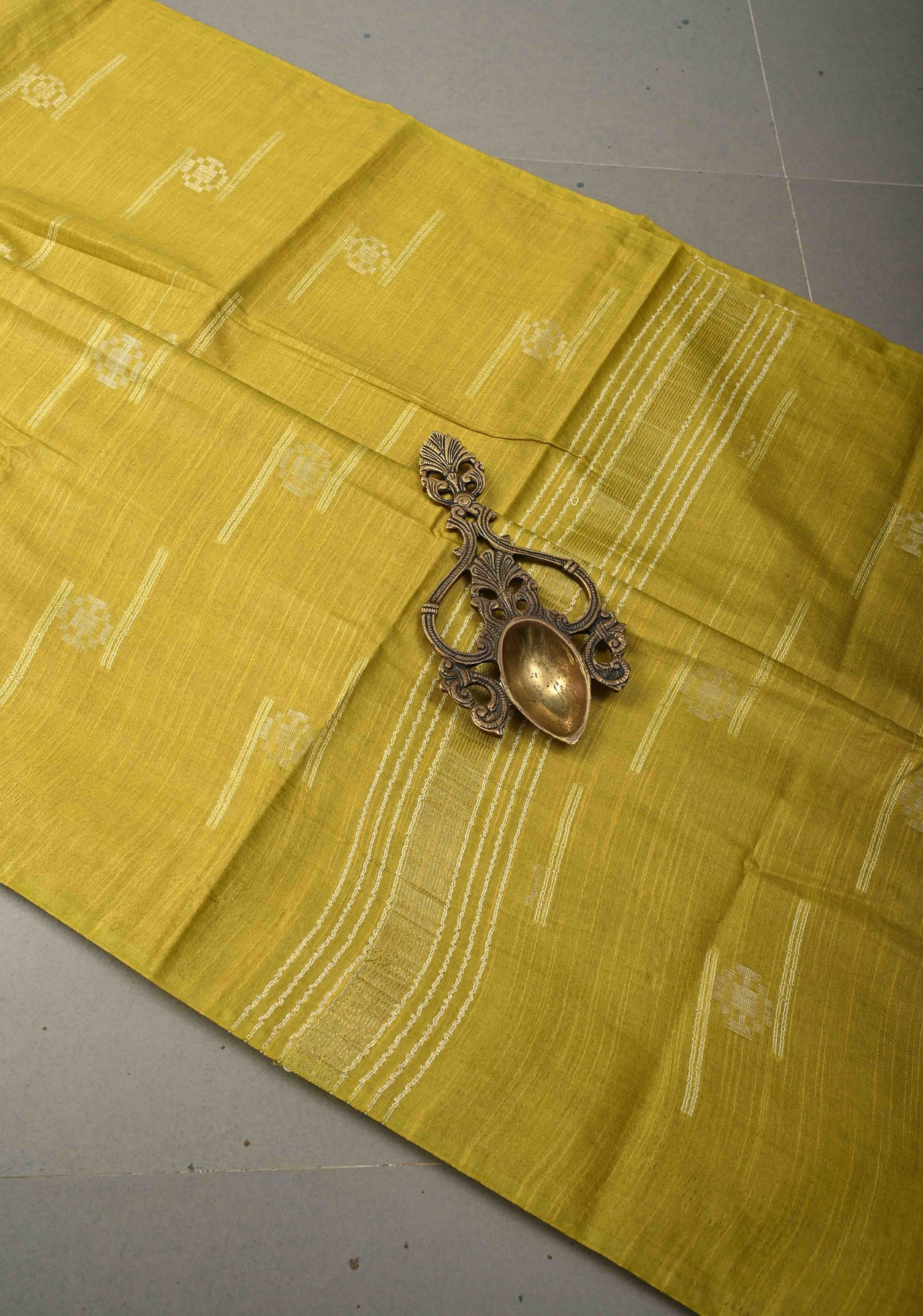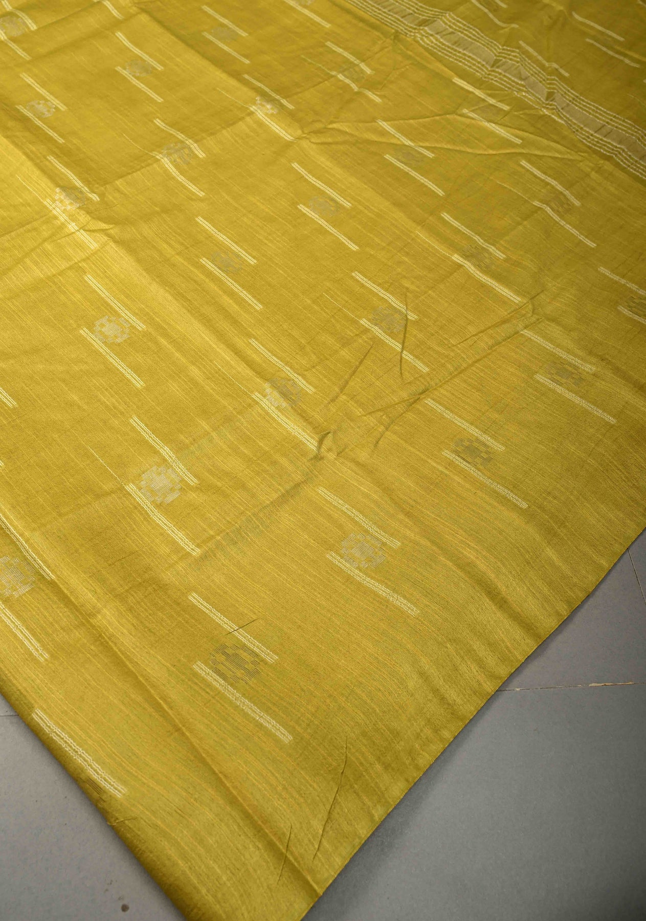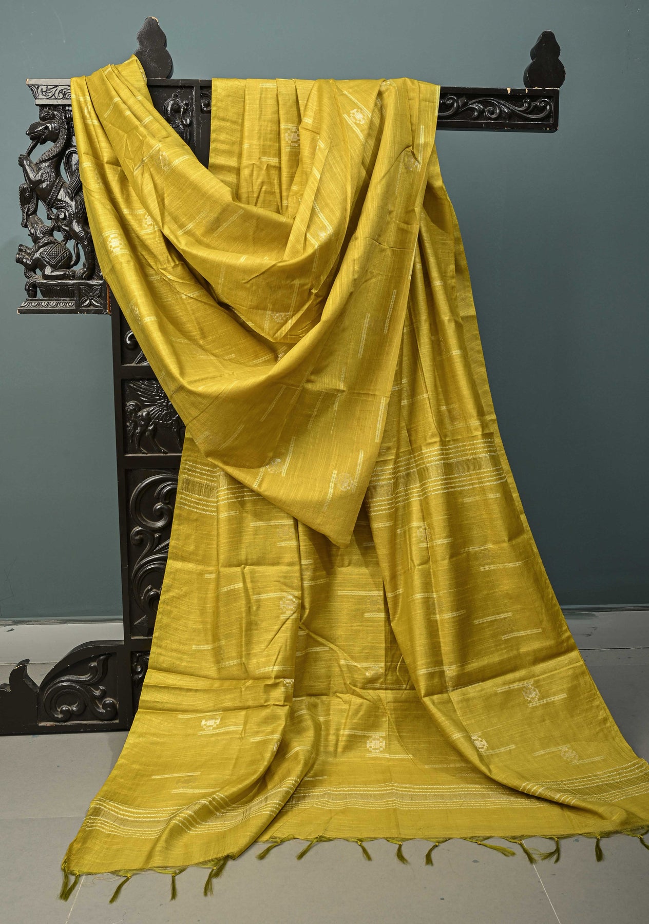 This moss green borderless semi-tussar saree is a stunning example of understated elegance. The serene moss green hue exudes natural beauty, while the borderless design brings a modern twist to traditional styling. Intricate thread and zari buttas are delicately scattered across the saree, adding a touch of sparkle and artistry. The semi-tussar fabric offers a perfect balance of texture and softness, ensuring comfort without compromising on style. Whether for weddings, festive occasions, or cultural events, this saree is a versatile piece that combines traditional charm with contemporary flair.
