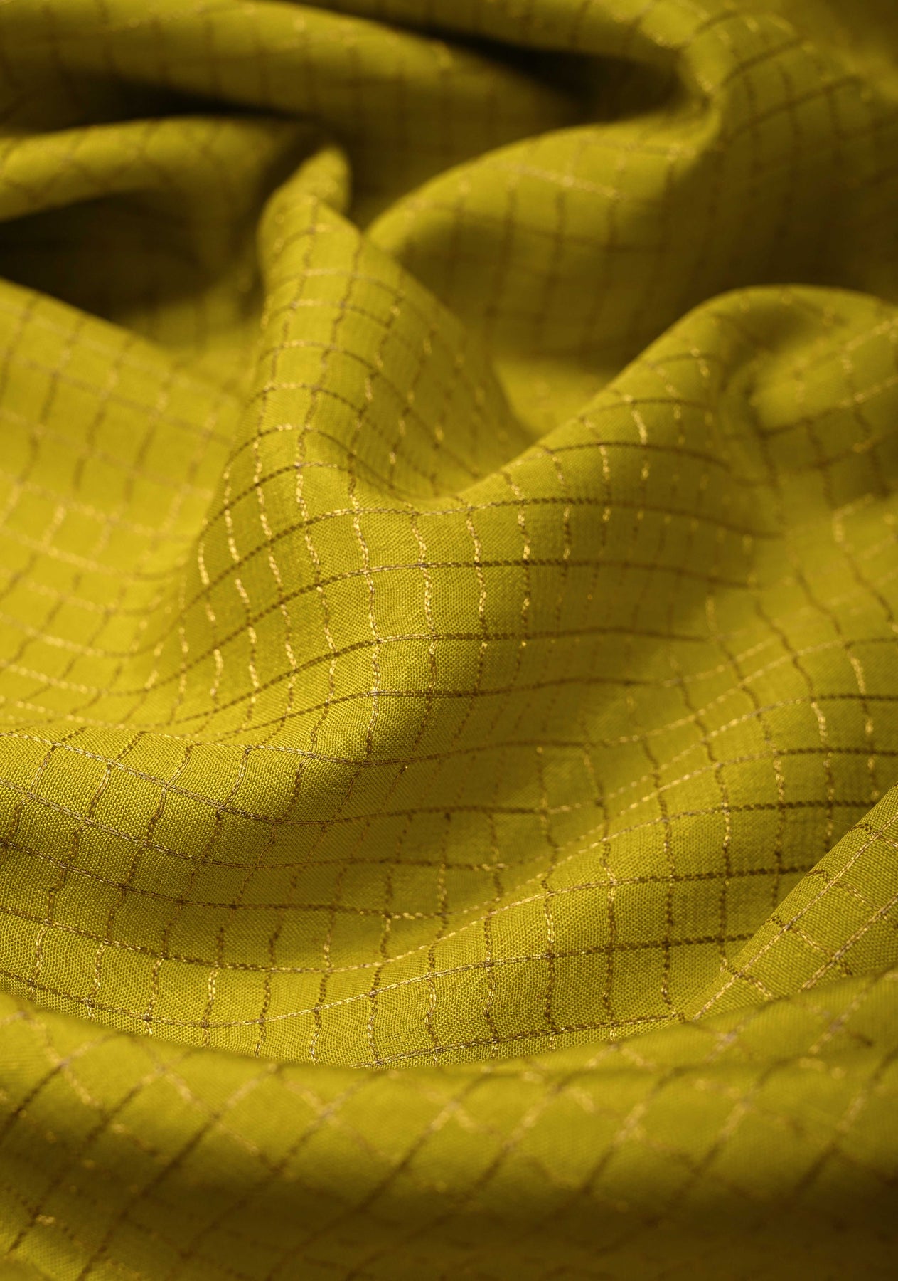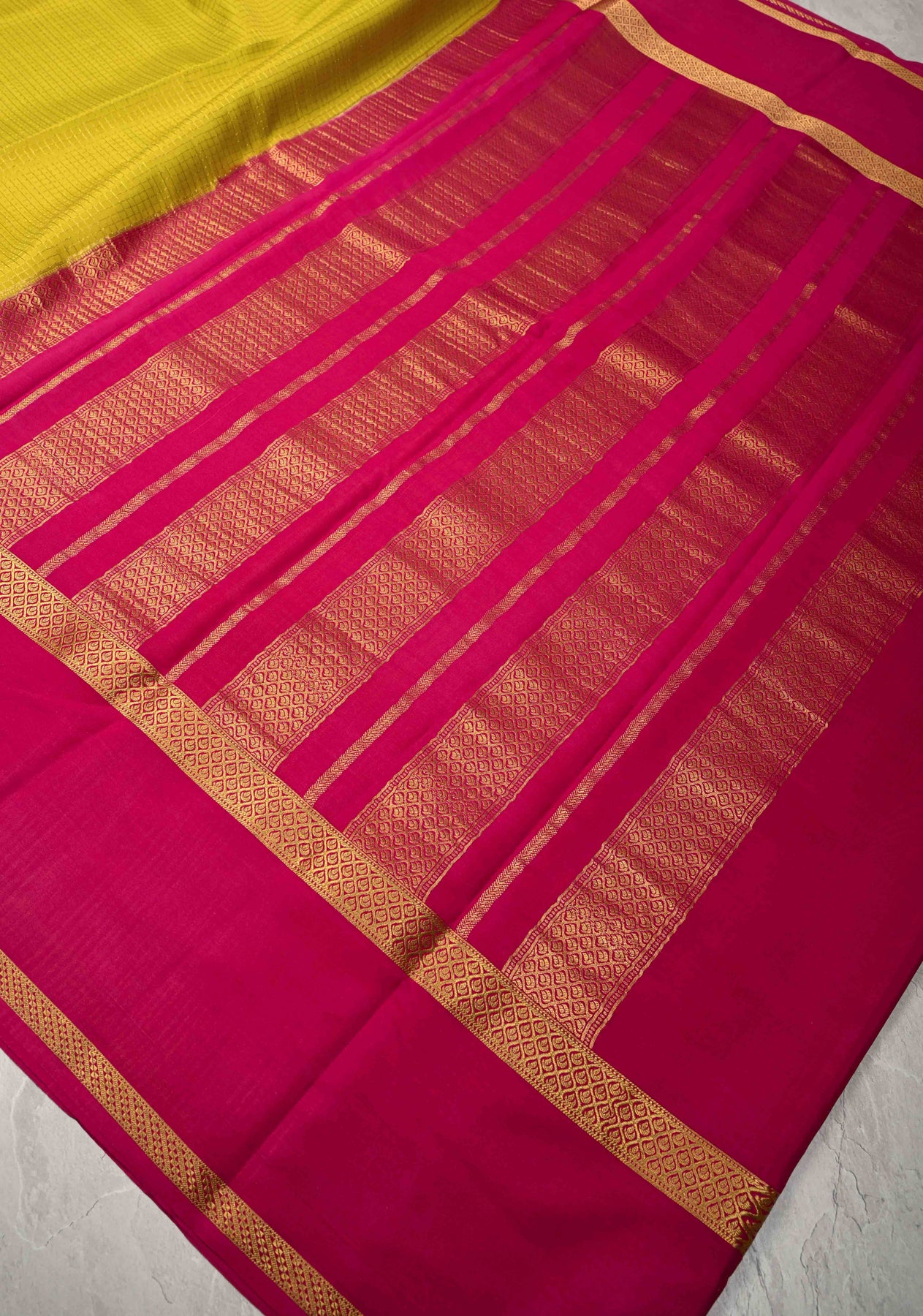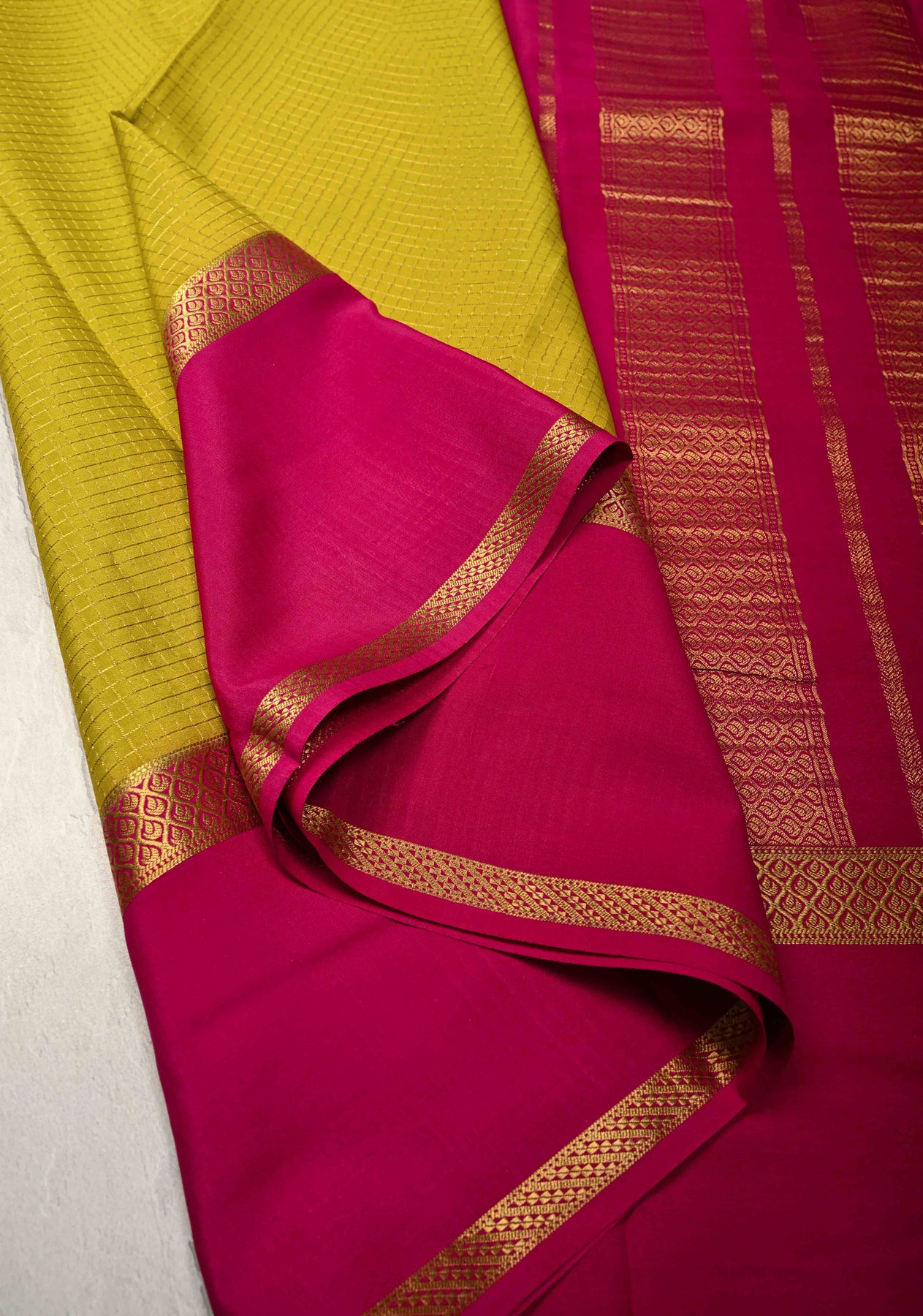 Moss Green Pure Mysore Silk Saree with Podi-Kattam Zari Checks and Contrast Zari Border in KSIC Grade Thickness | SILK MARK CERTIFIED