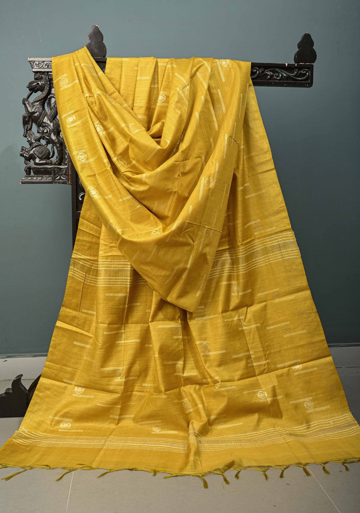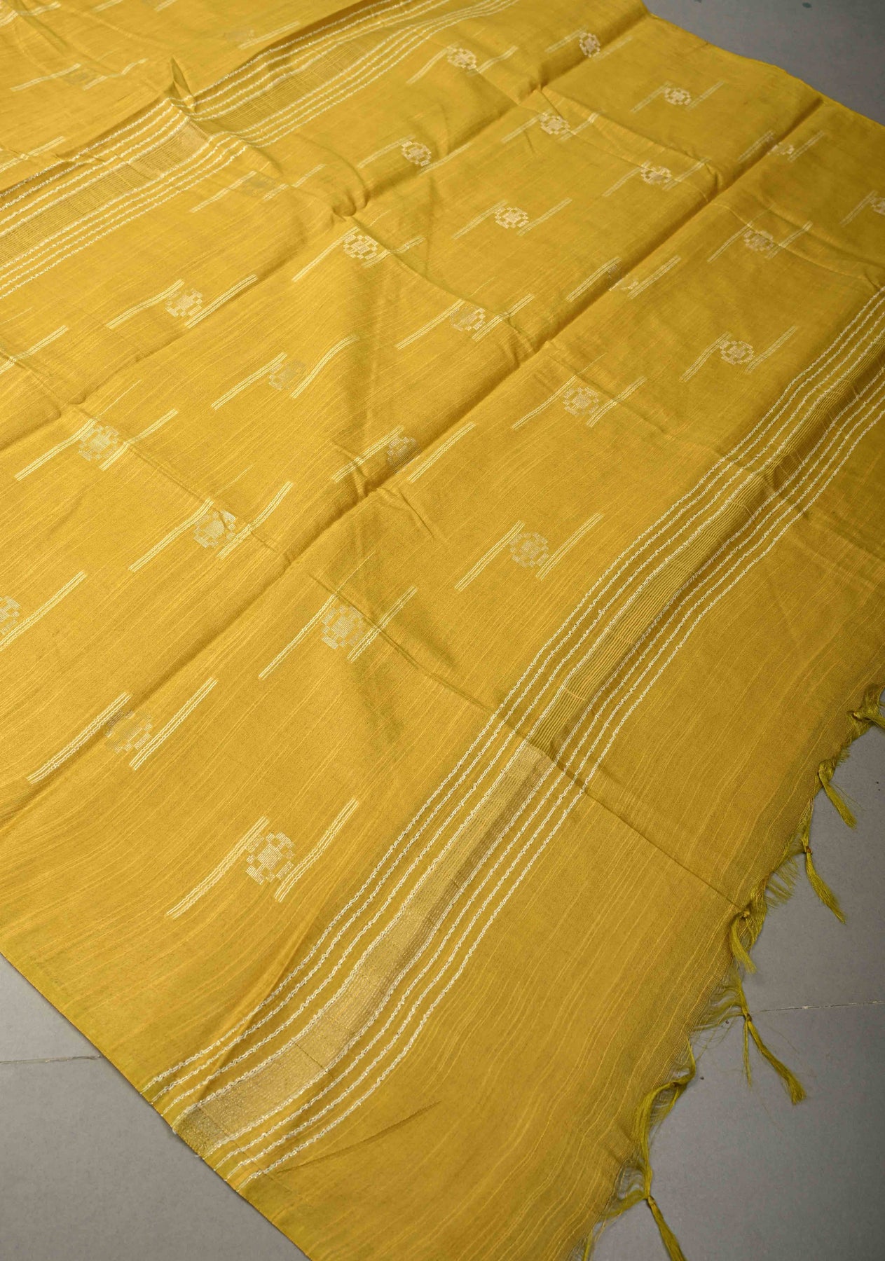 This moss yellow borderless semi-tussar saree offers a soft, earthy elegance with its gentle, nature-inspired hue. The moss yellow shade provides a warm, inviting tone, while the borderless design highlights the intricate thread and zari buttas scattered throughout the saree. The combination of delicate threadwork and shimmering zari accents adds a subtle yet sophisticated sparkle to the piece. The semi-tussar fabric ensures a graceful, slightly textured drape, making it perfect for both casual wear and festive occasions. Ideal for those who appreciate a blend of simplicity and timeless beauty, this saree is perfect for weddings, celebrations, or cultural gatherings.