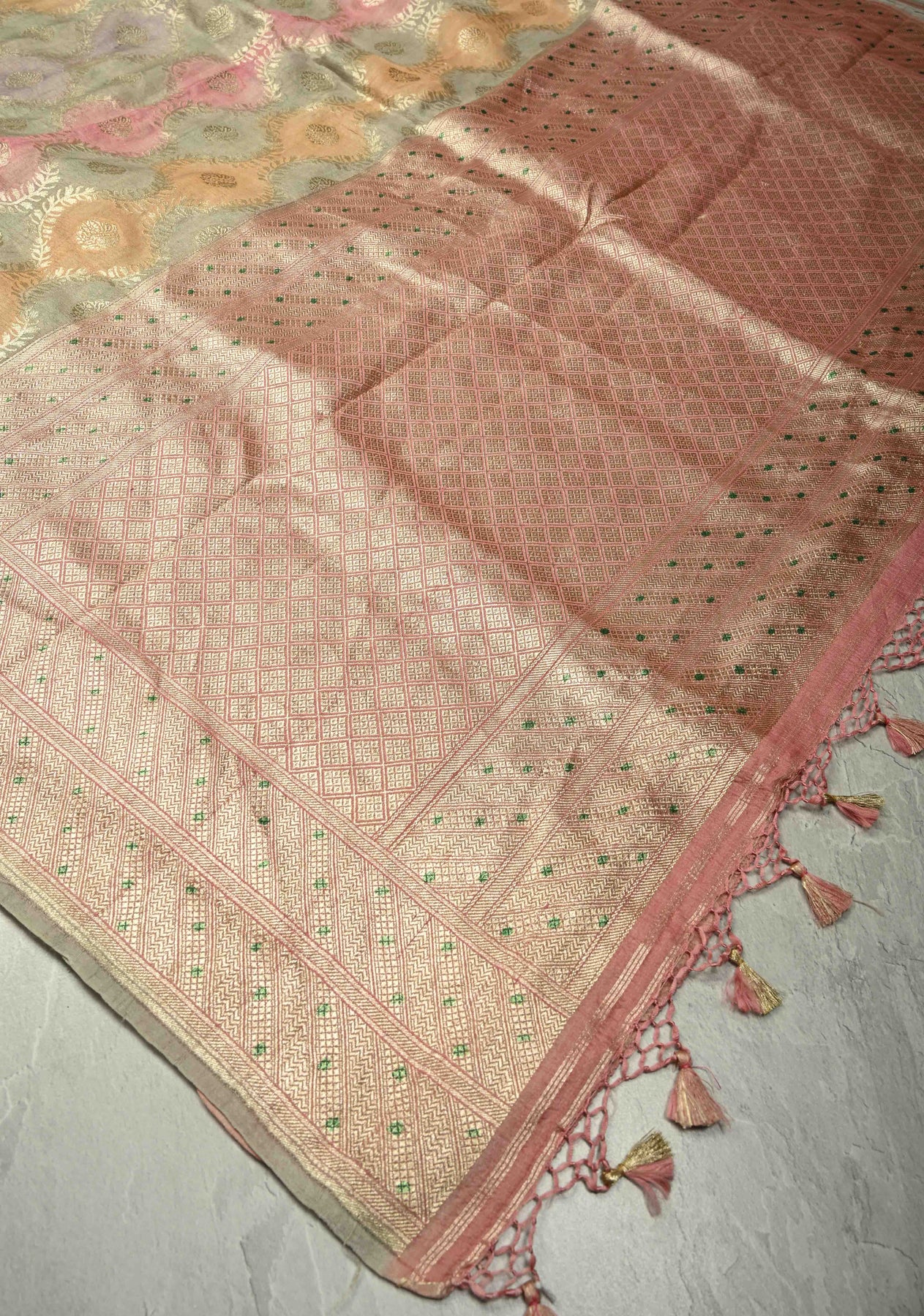 *Note: This is a handmade saree and there may be slight inconsistencies such as in it's weaving. These are characteristic of handmade products and attest to their originality and are not considered as defects.