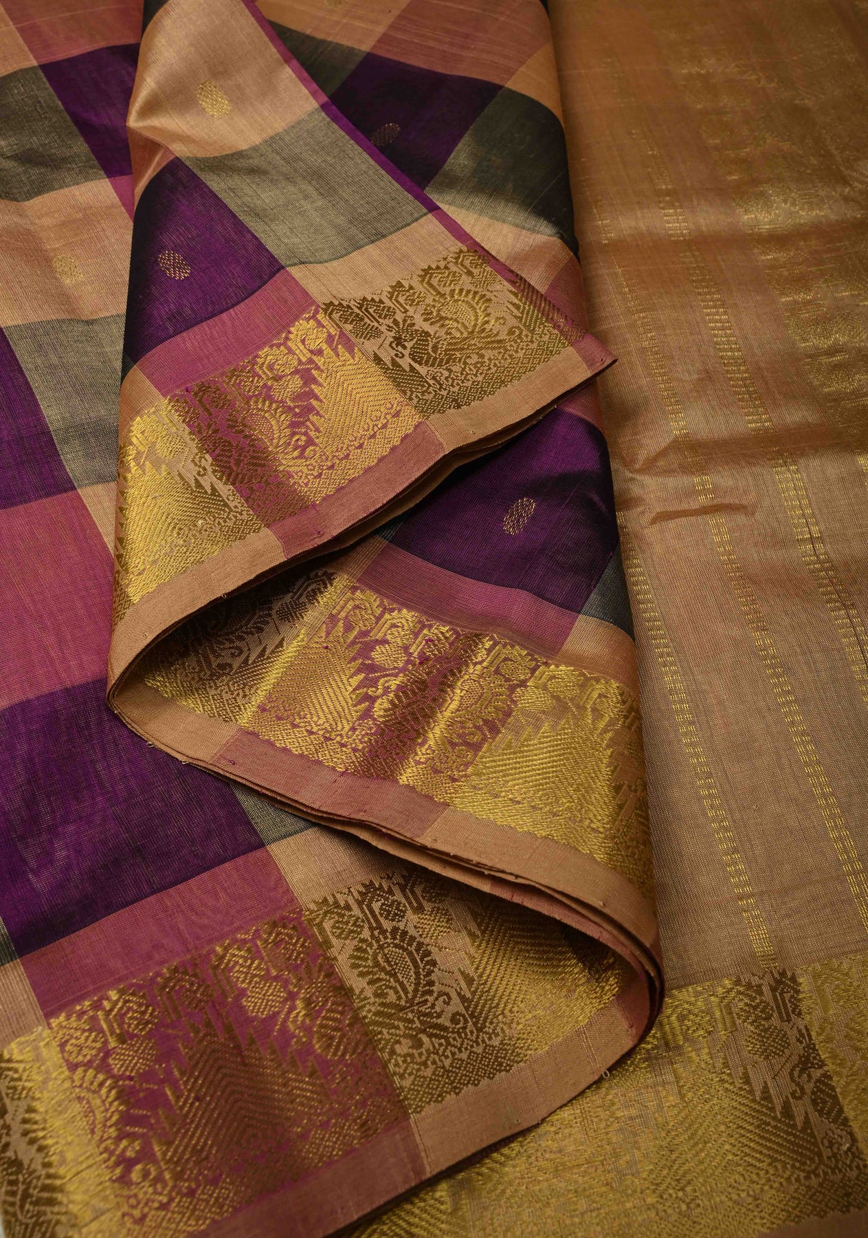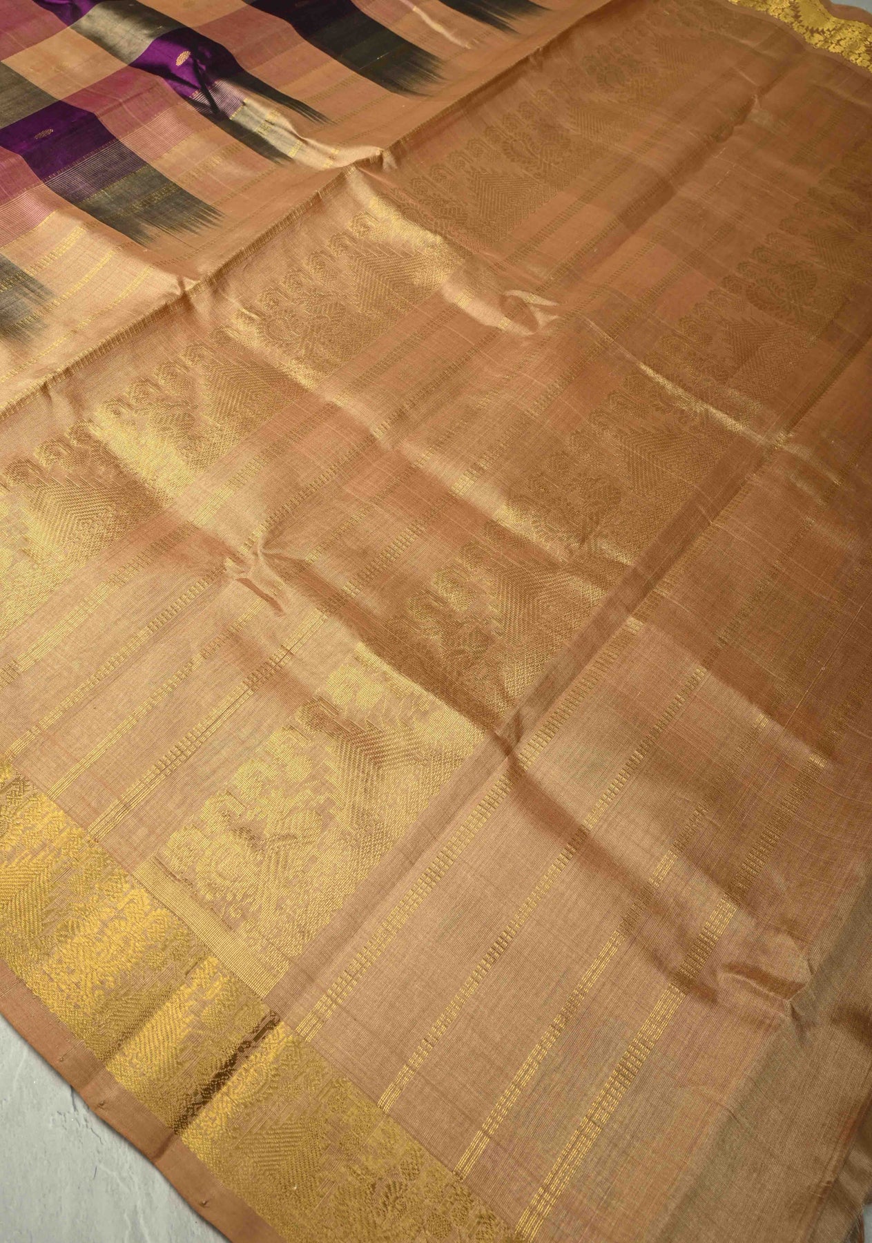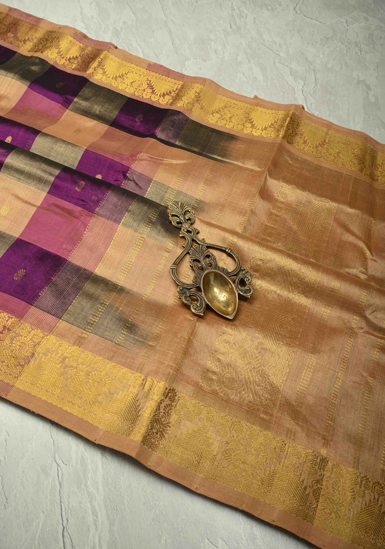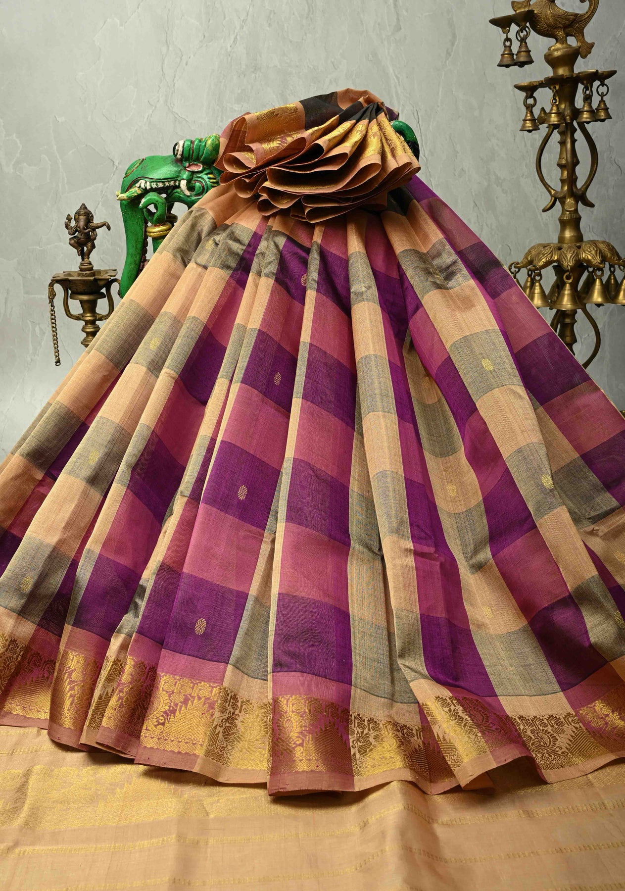 Experience the rich heritage of South India with this Multicolor Palum Pazhamum Kanchi Silk Cotton Saree, adorned with delicate zari buttas and a beautifully woven zari border. Crafted from a luxurious silk cotton blend, this saree offers both comfort and elegance. The vibrant colors and traditional motifs make it perfect for festive occasions, weddings, and cultural celebrations. Pair it with classic gold jewelry to complete a timeless, regal look.