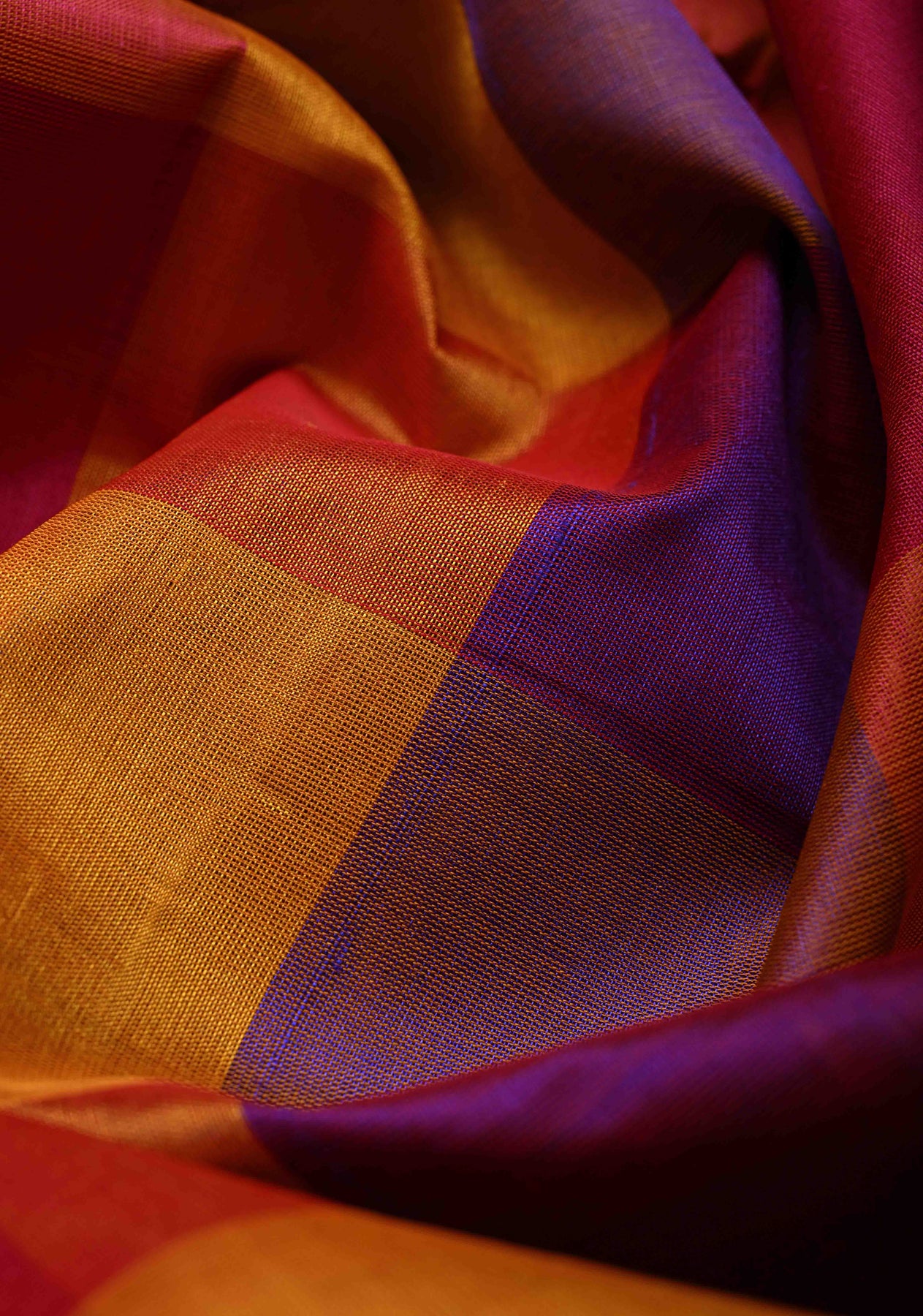 Add a splash of tradition and elegance with this Multicolor Palum Pazhamum Kanchi Silk Cotton Saree, handwoven to perfection with the iconic Palum Pazhamum design. Made from 100% silk cotton, this saree offers a soft, lightweight, and comfortable drape, ideal for long festive celebrations or special occasions.