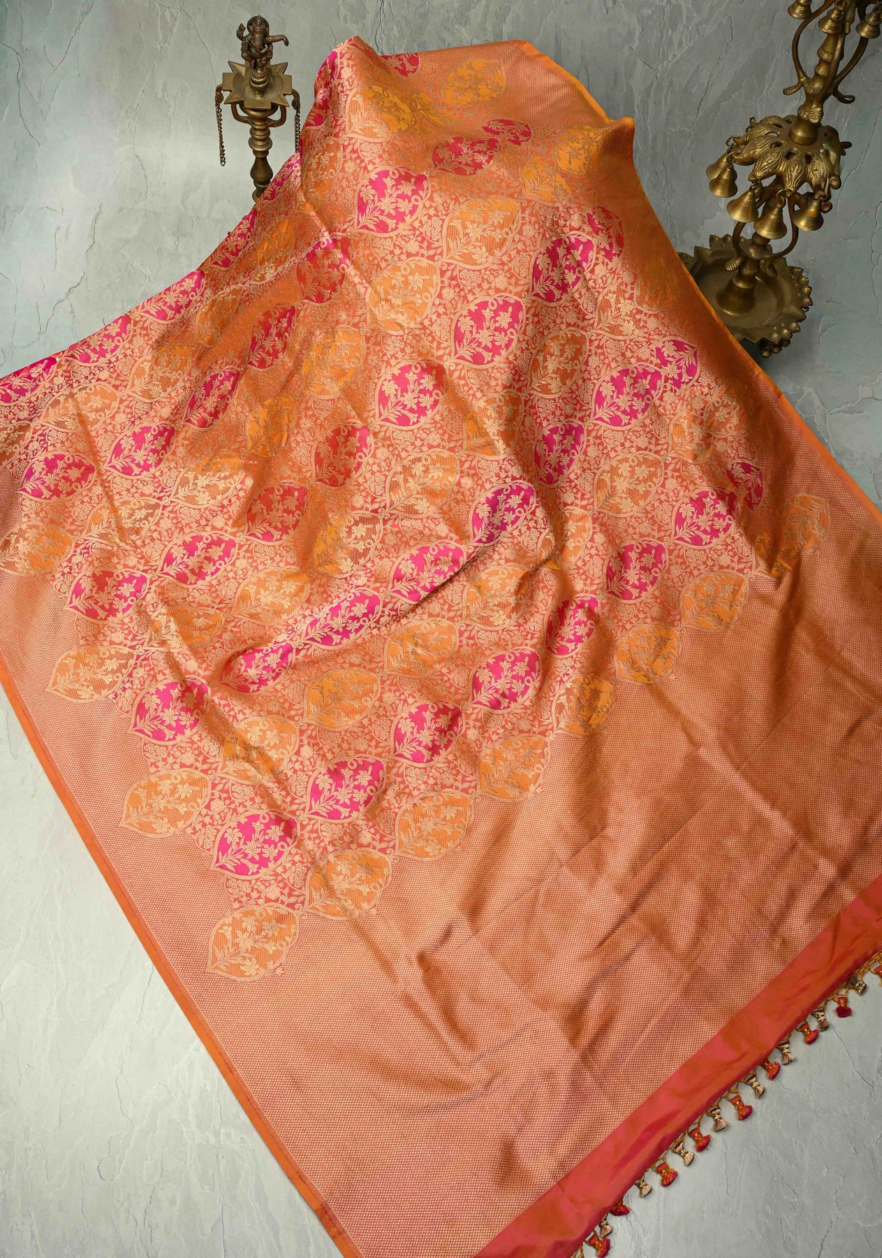 Multicolor Rangkaat Style Banarasi Katan Silk Saree and Persian Floral Brocade and Zari Border | SILK MARK CERTIFIED