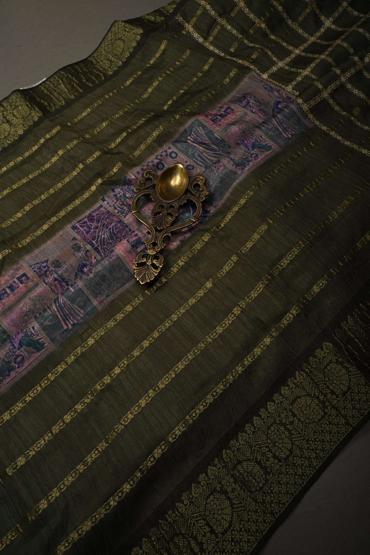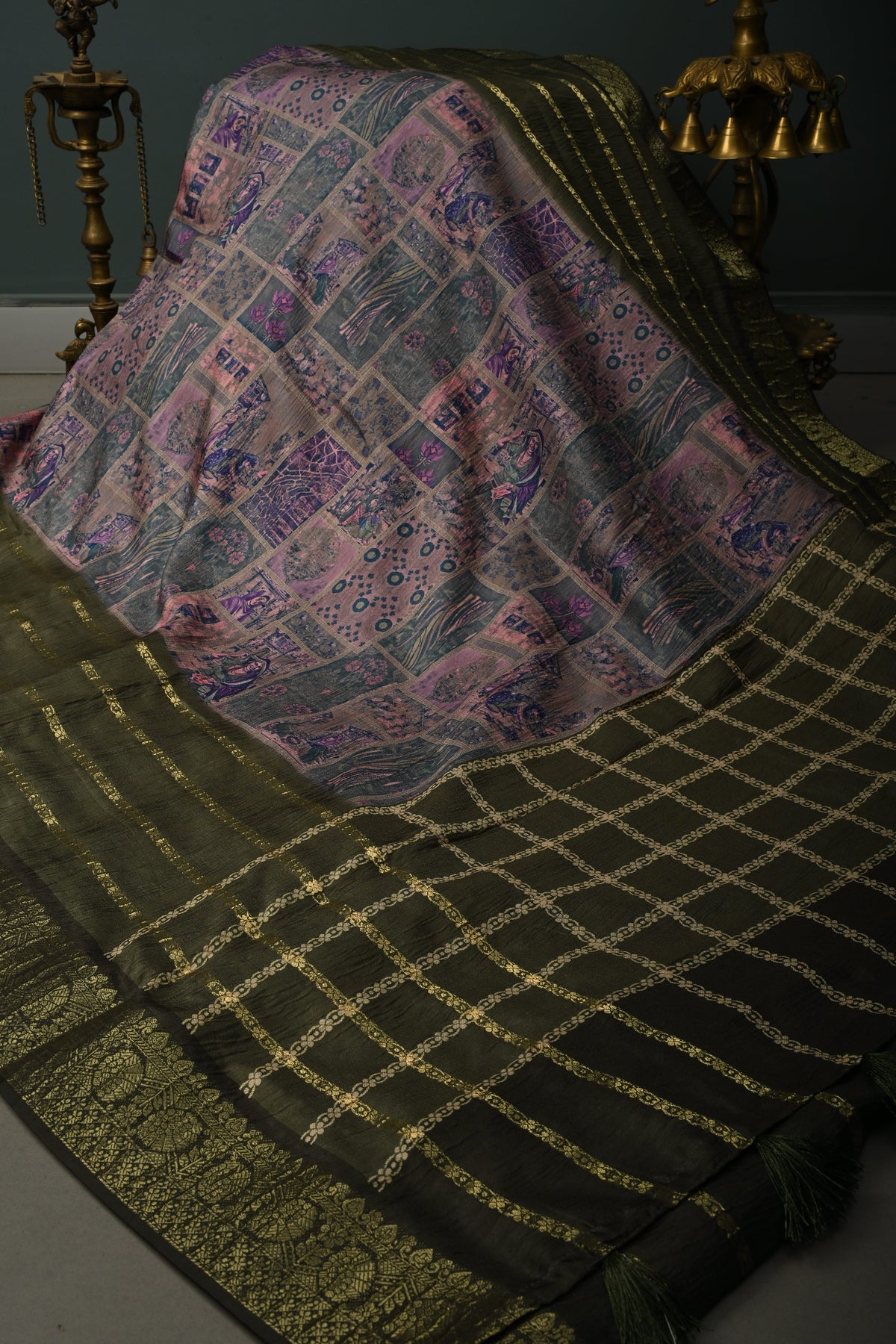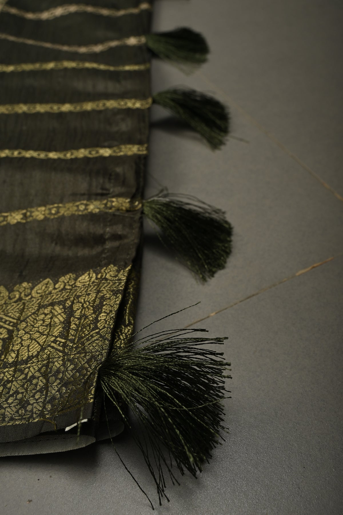 This saree is ready to wear with falls and pico done. An unstitched blouse fabric is included.