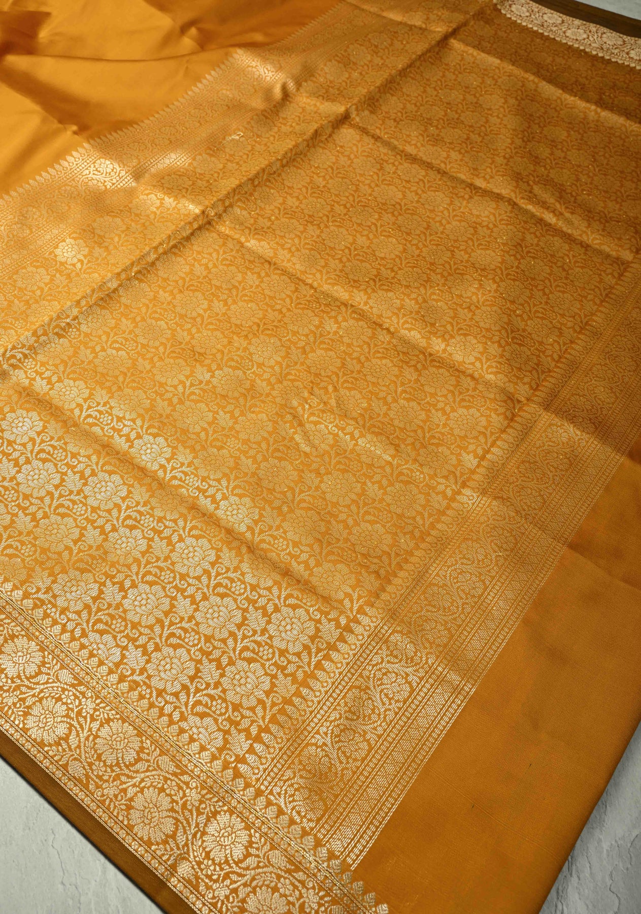 Mustard Semi Silk Saree with Floral Zari Border and Brocade Blouse Piece